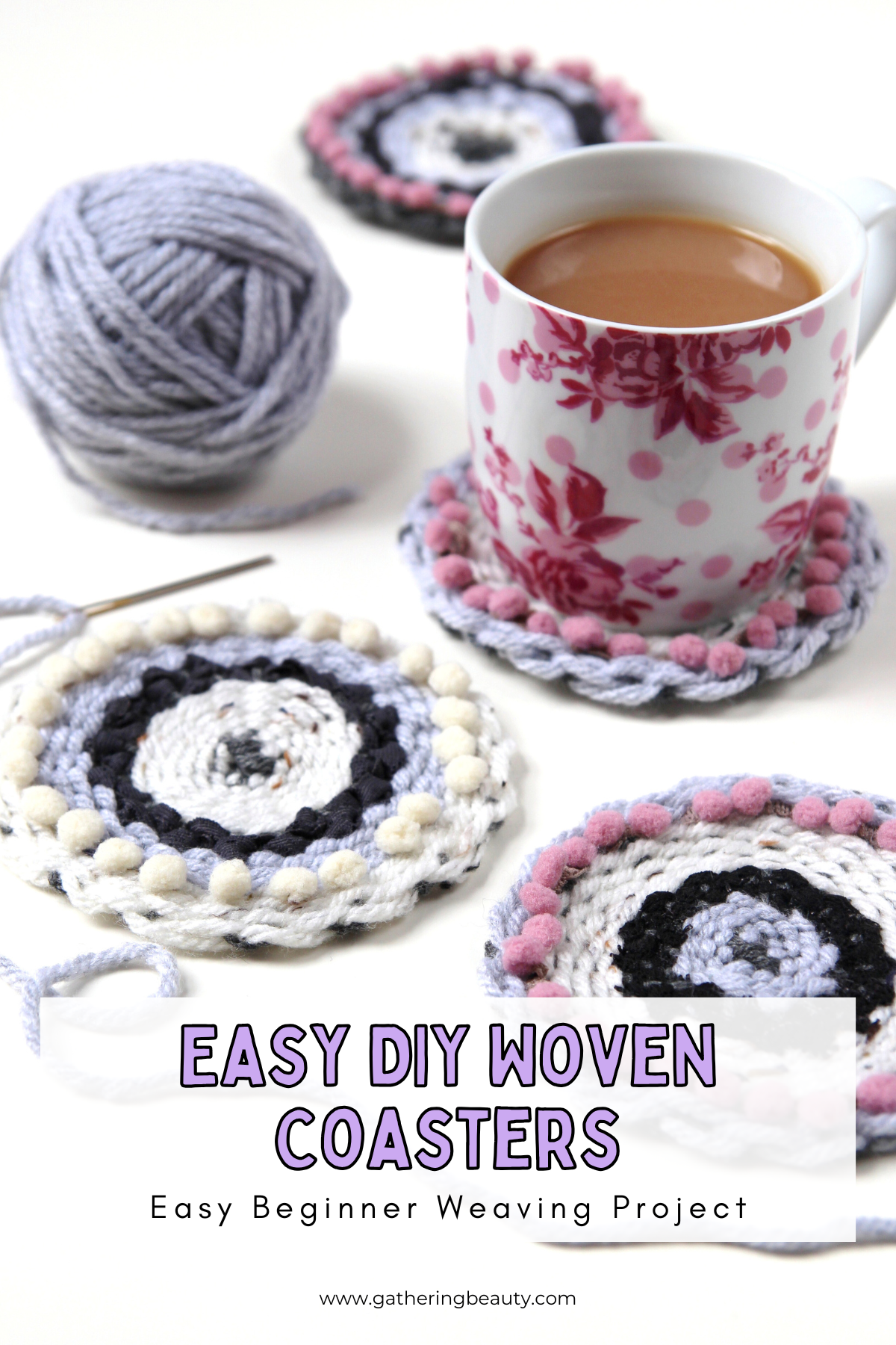 Easy DIY Woven Coasters Using a Cardboard Loom.