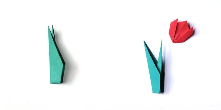 4. Flip your tulip over and fold the sides in to make 2 small triangles. Your tulip head is now finished. Easy peasy, right?