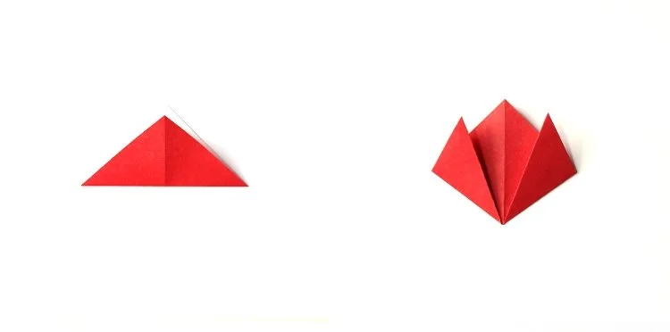3. Take the triangle and fold the corners up at an angle not quite to the middle to make the side petals of the tulip.