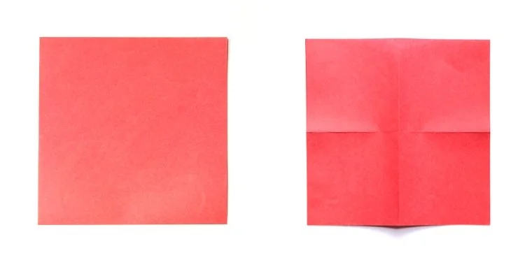 1. Take your origami paper and fold it into quarters - fold it in half, open out and fold in half again.