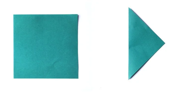 1. Take your green origami paper and fold it in half across the diagonal.