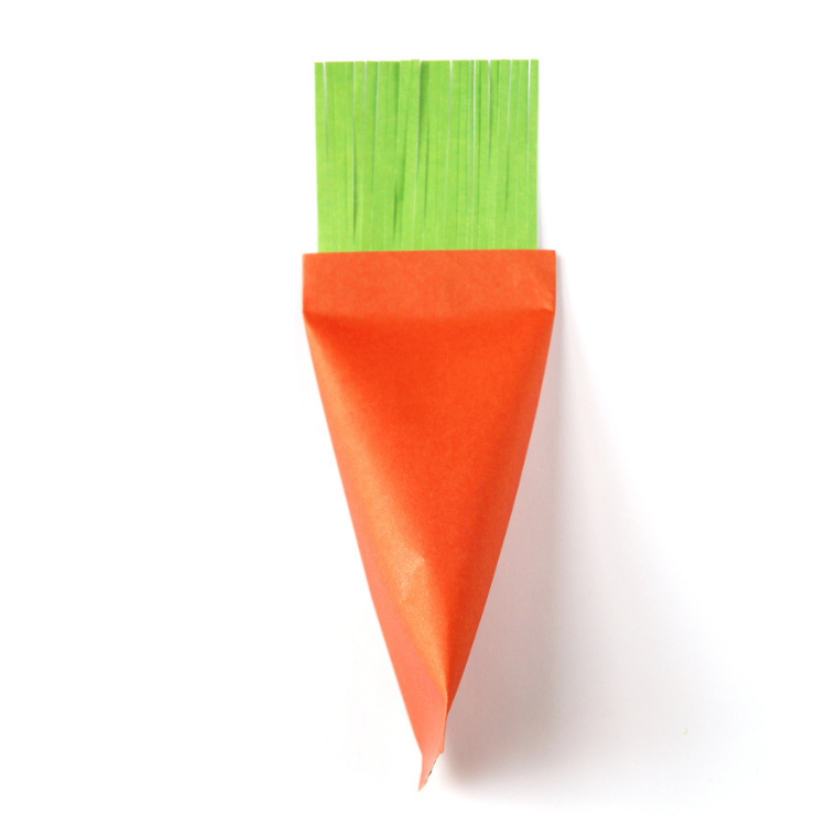 9. Use a pair of fringe scissors to cut along the strip of green paper to make the carrot top.