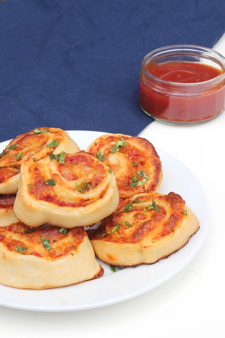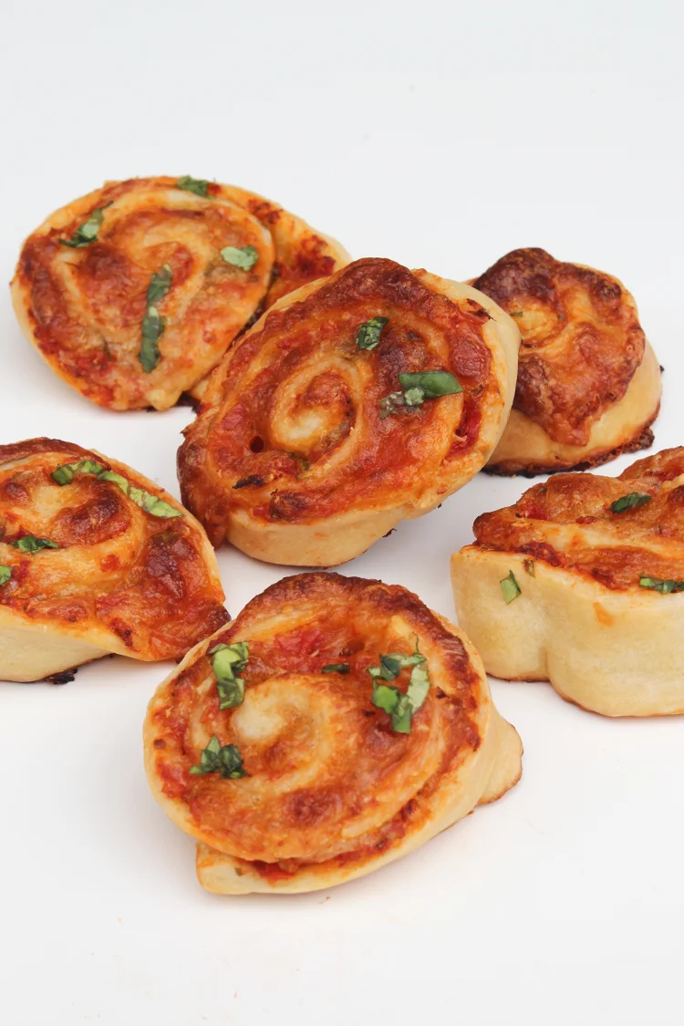 /These easy pizza rolls are an instant crowd-pleaser. An easy to make recipe, packed full of sweet tomatoes and gooey mozzarella cheese. The perfect lunch or party snack for both kids and adults alike.