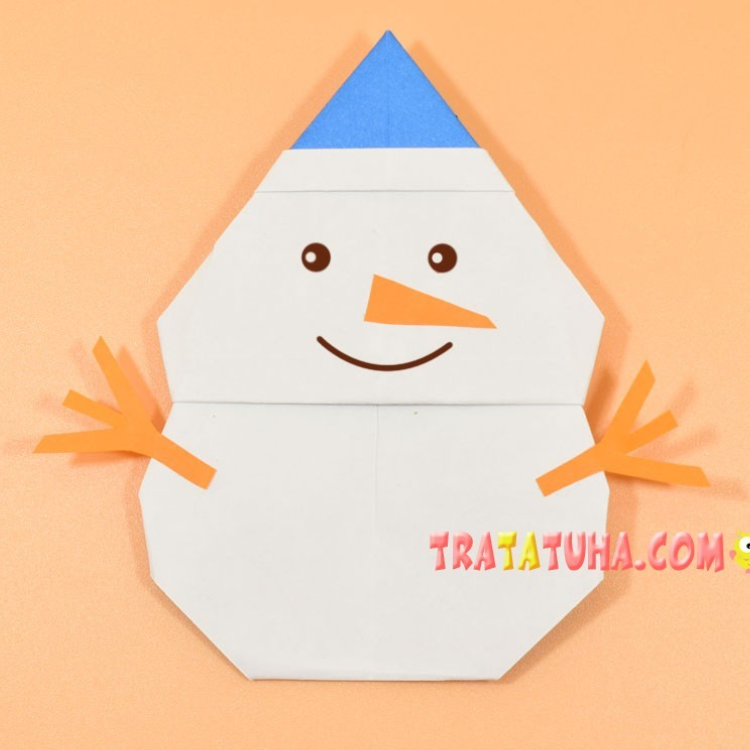 Funny origami snowman. How to make a paper snowman step by step. Easy origami level for beginners and kids.