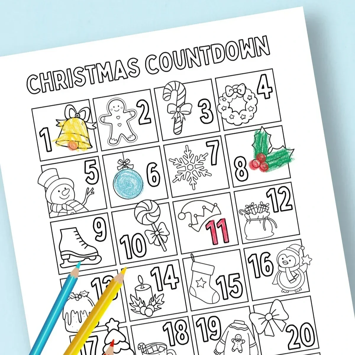Countdown to Christmas with this Free Printable Christmas Countdown Calendar that you can colour each day! Perfect for kids and adults, this DIY activity is a fun and festive way for the entire family to mark each day during the holiday season.
