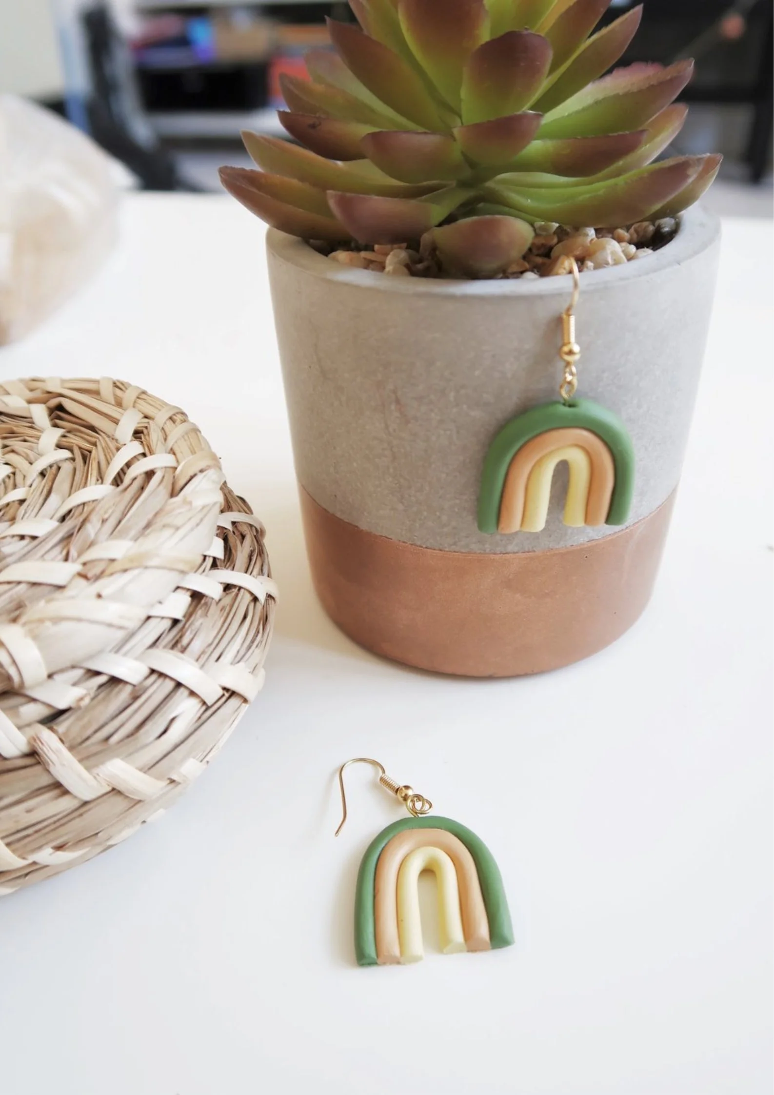 I’m loving all the interesting and creative ways bloggers are incorporating them into their projects and decor, and it completely inspired me to have a go at making these rainbow inspired earrings. The bright and bold colours of the rainbow aren’t for everyone though, and so I opted for making the earrings in earthy, muted and pastel tones, for those of us who prefer things a bit more understated!