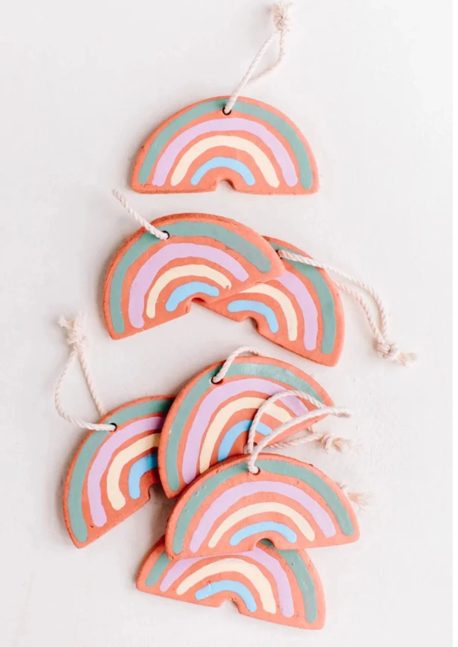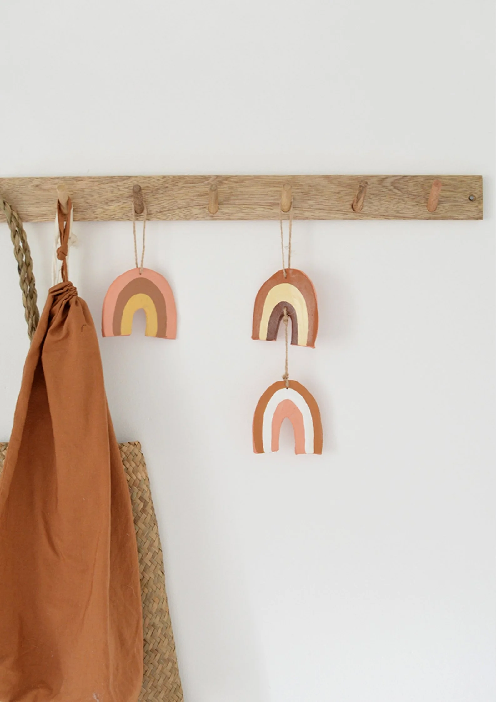 I love muted earthy tones and I keep seeing rainbow decor all over my Pinterest feed so I wanted to make some ornaments that I could hang in a room to add a little extra cuteness.