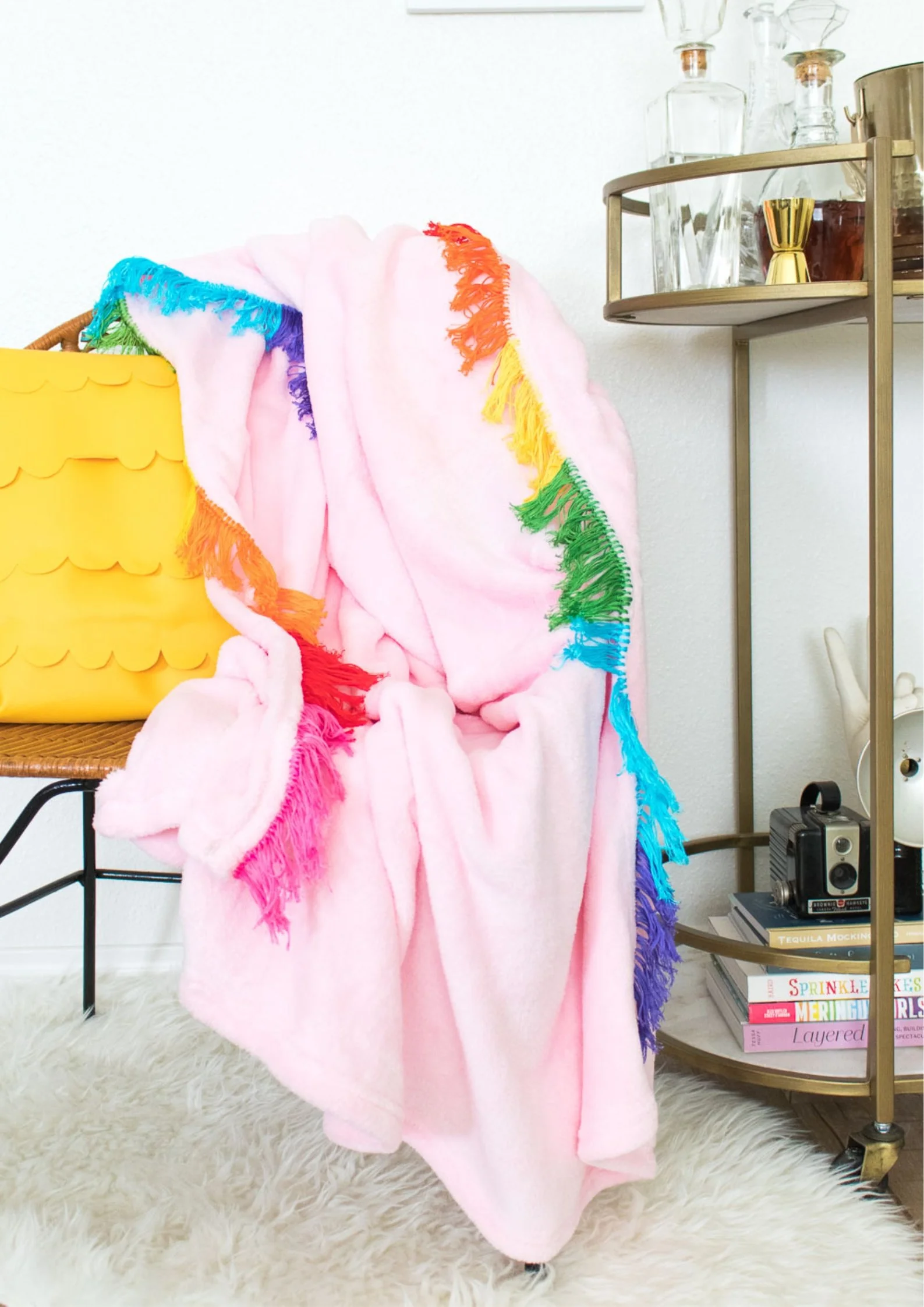 DIY Rainbow Fringe Blanket