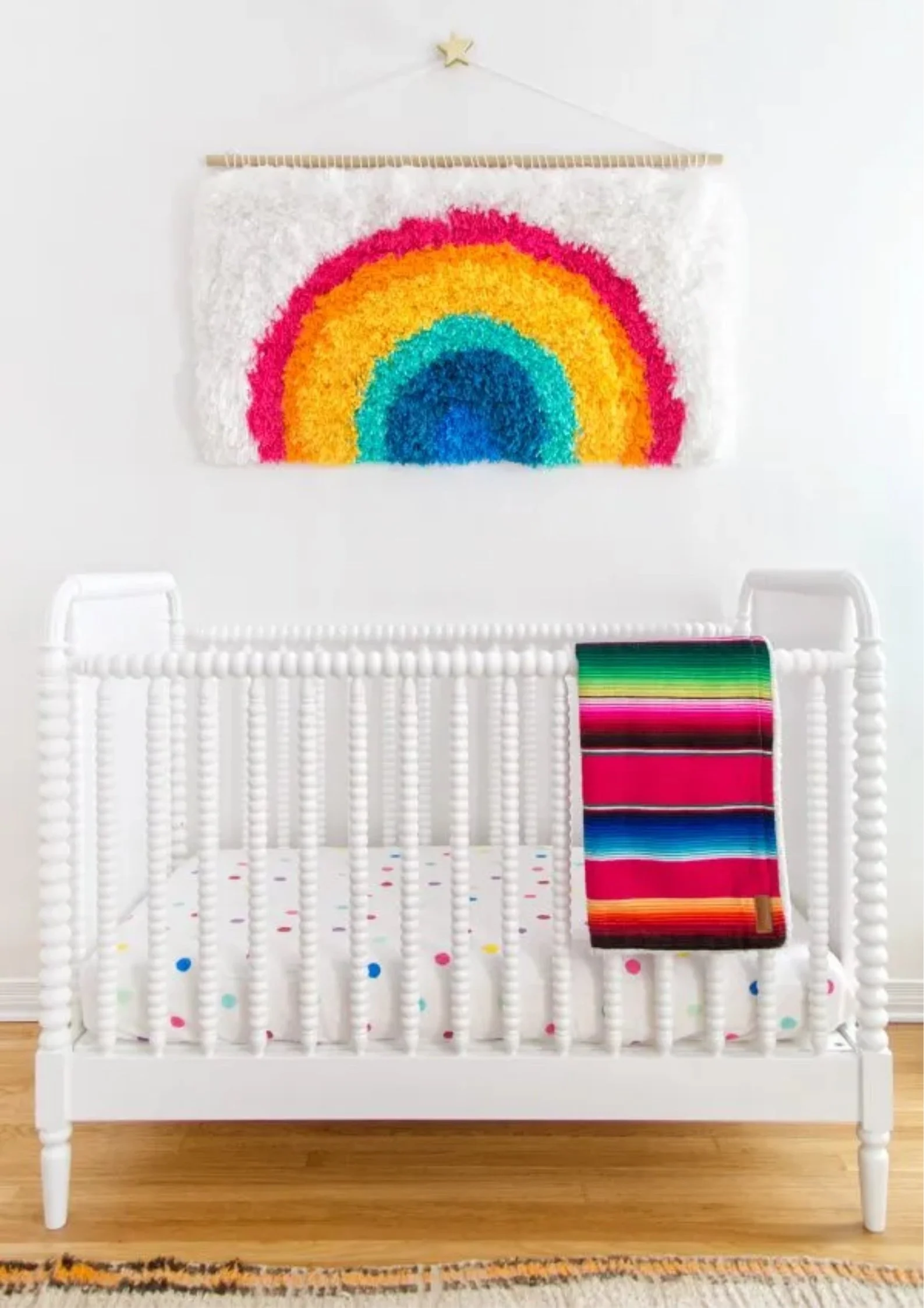 Almost a year in the making! I’m finally sharing all the details on the DIY rainbow latch hook wall hanging I made for Arlo’s nursery. It was a true labor of love and due to the fact that I insisted it be huge, it took a very long time. But I’m so thrilled with how it ended up!