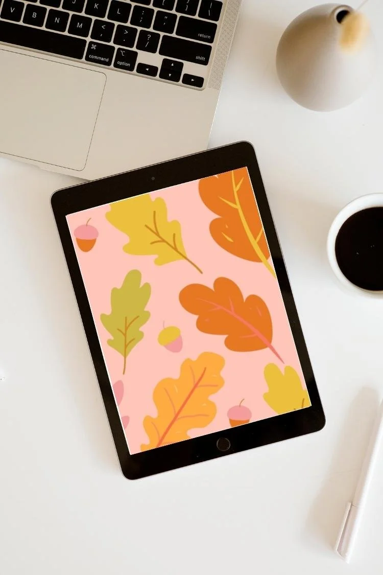 Download the coral and mustard leaves and burnt orange acorns and decorate your screen with some pretty autumnal leaves.