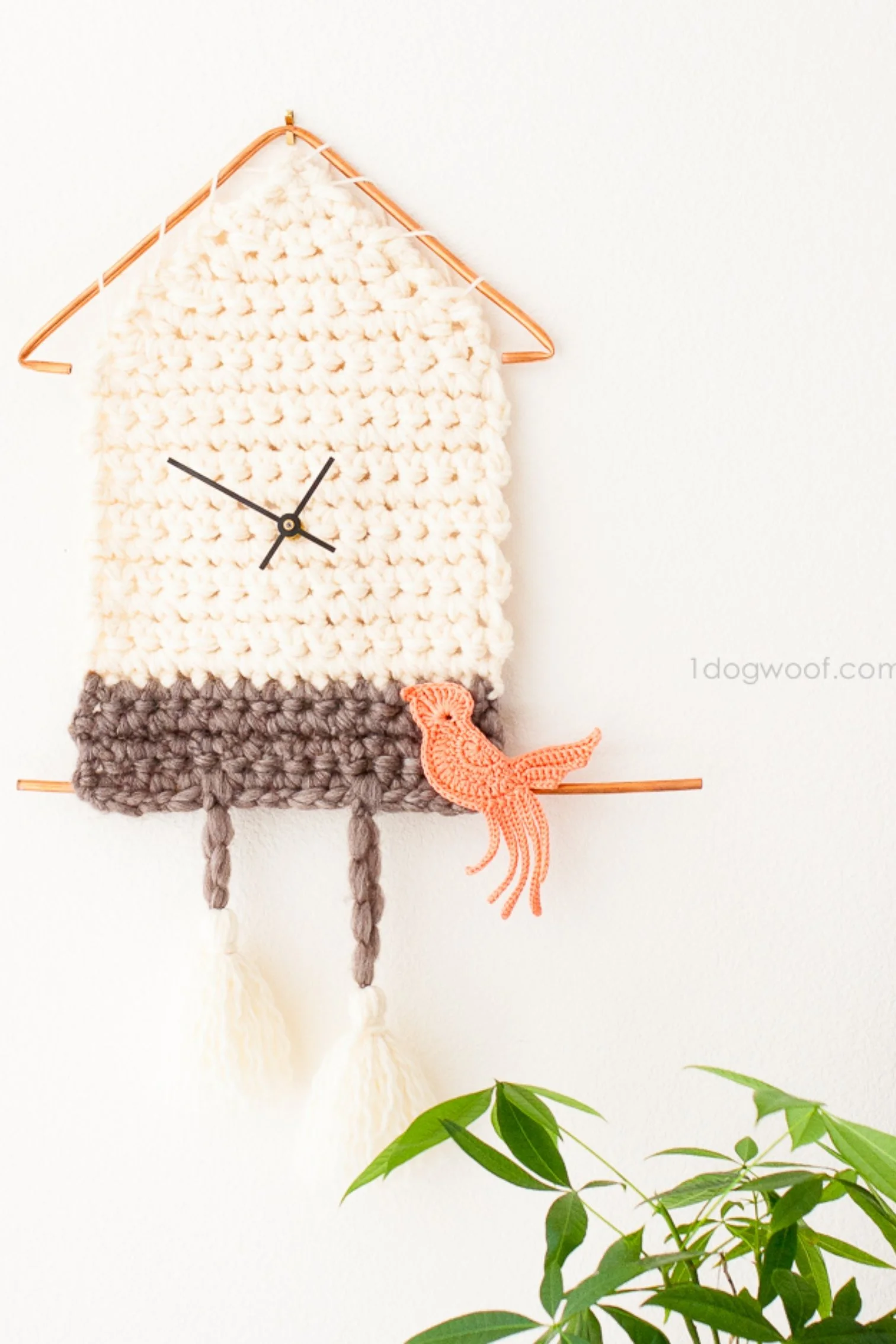 If we can have wooden clocks and metal clocks and clocks that knit scarves, why not have a clock made from yarn? I’m excited to share with you my yarn cuckoo clock wall hanging today, and show you what a fun and easy project this is!
