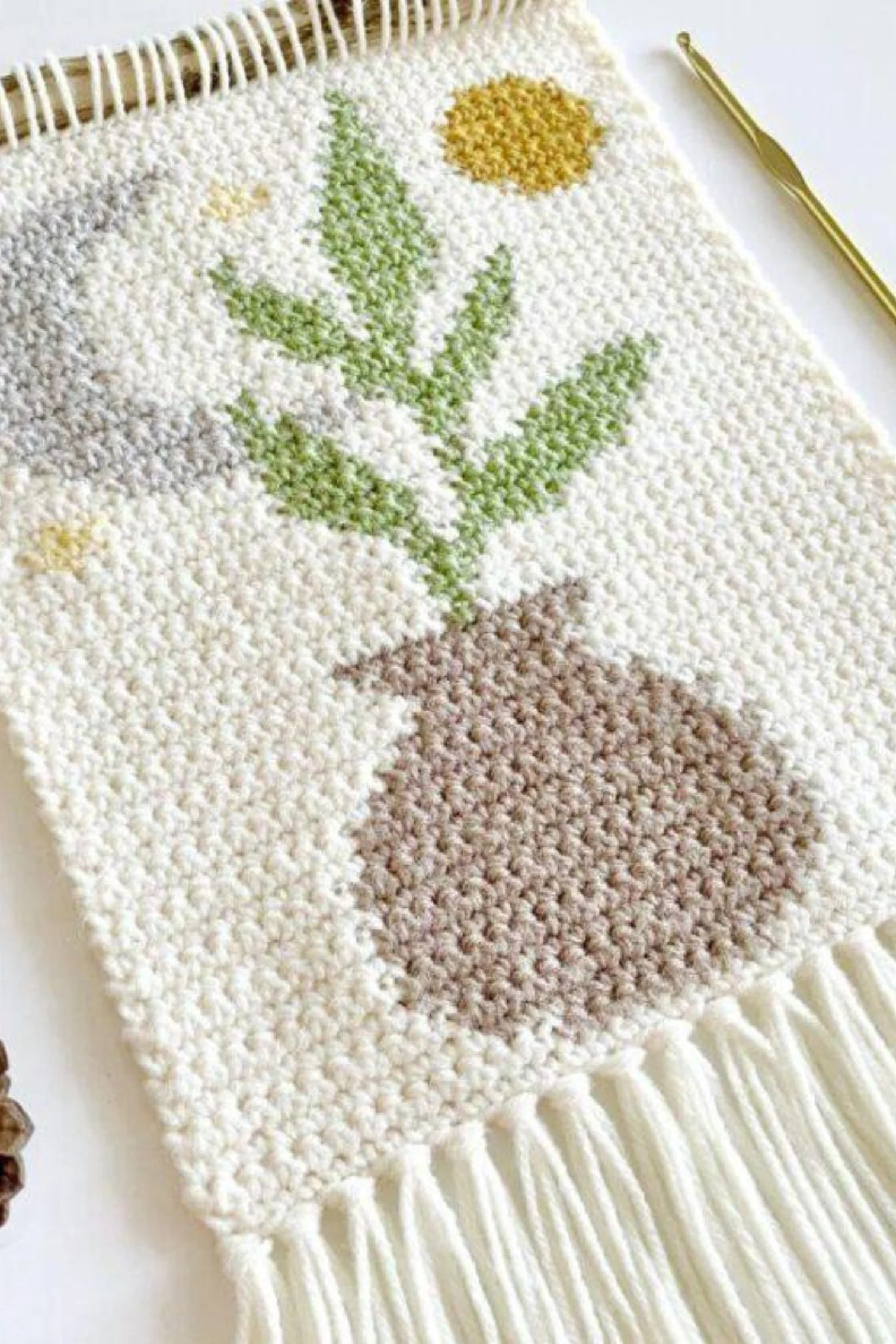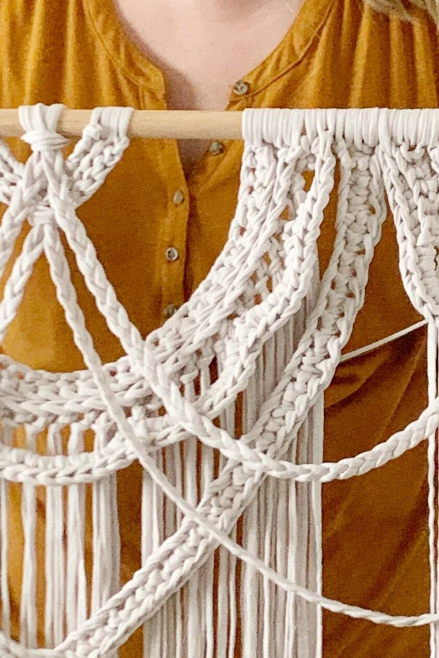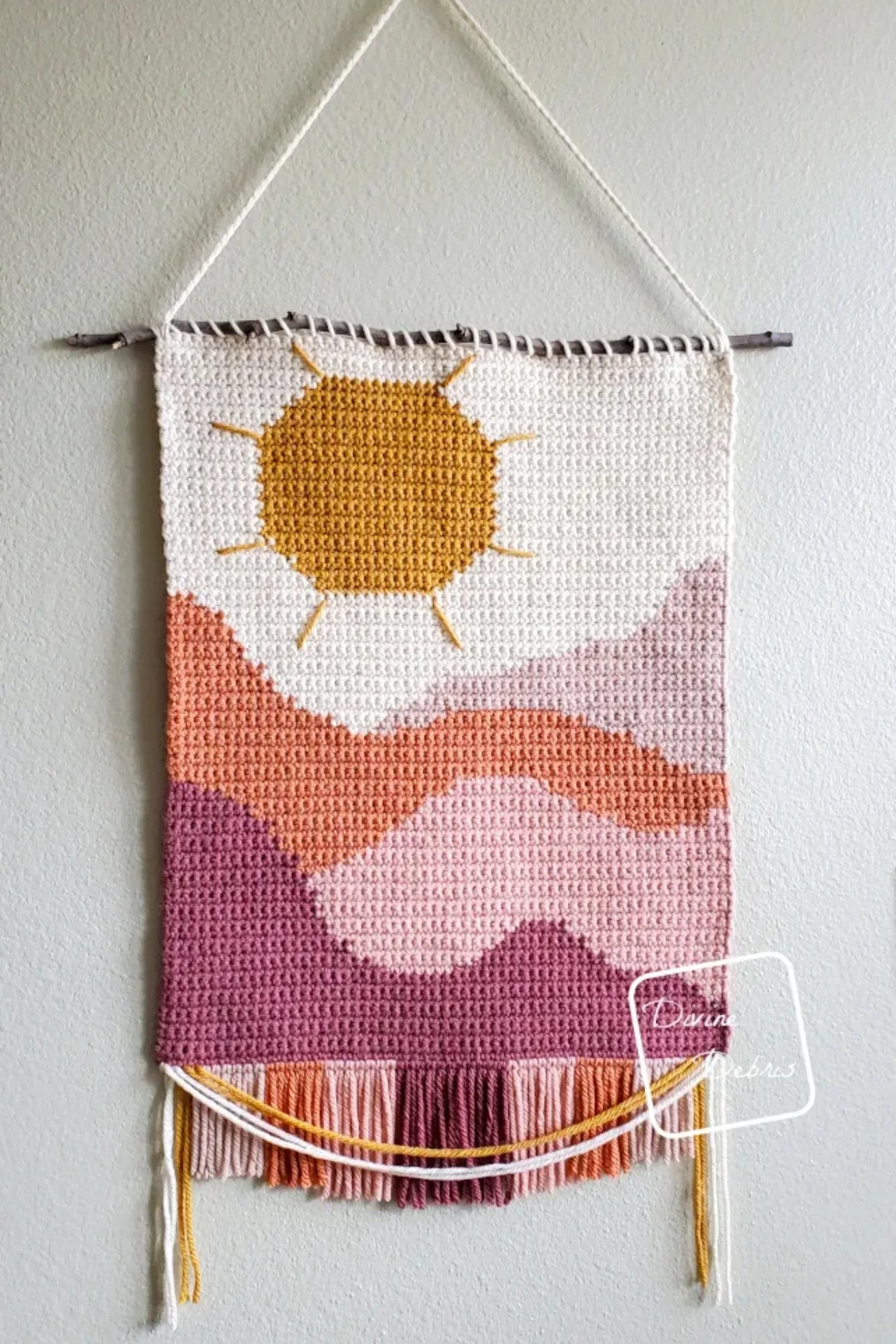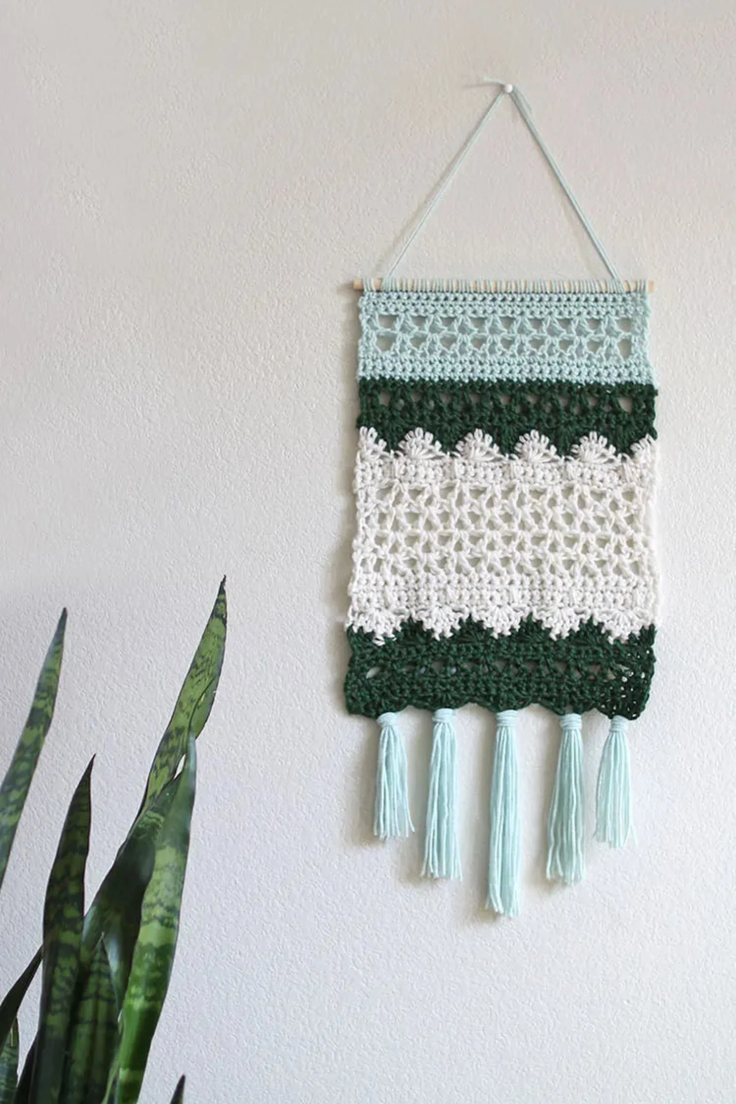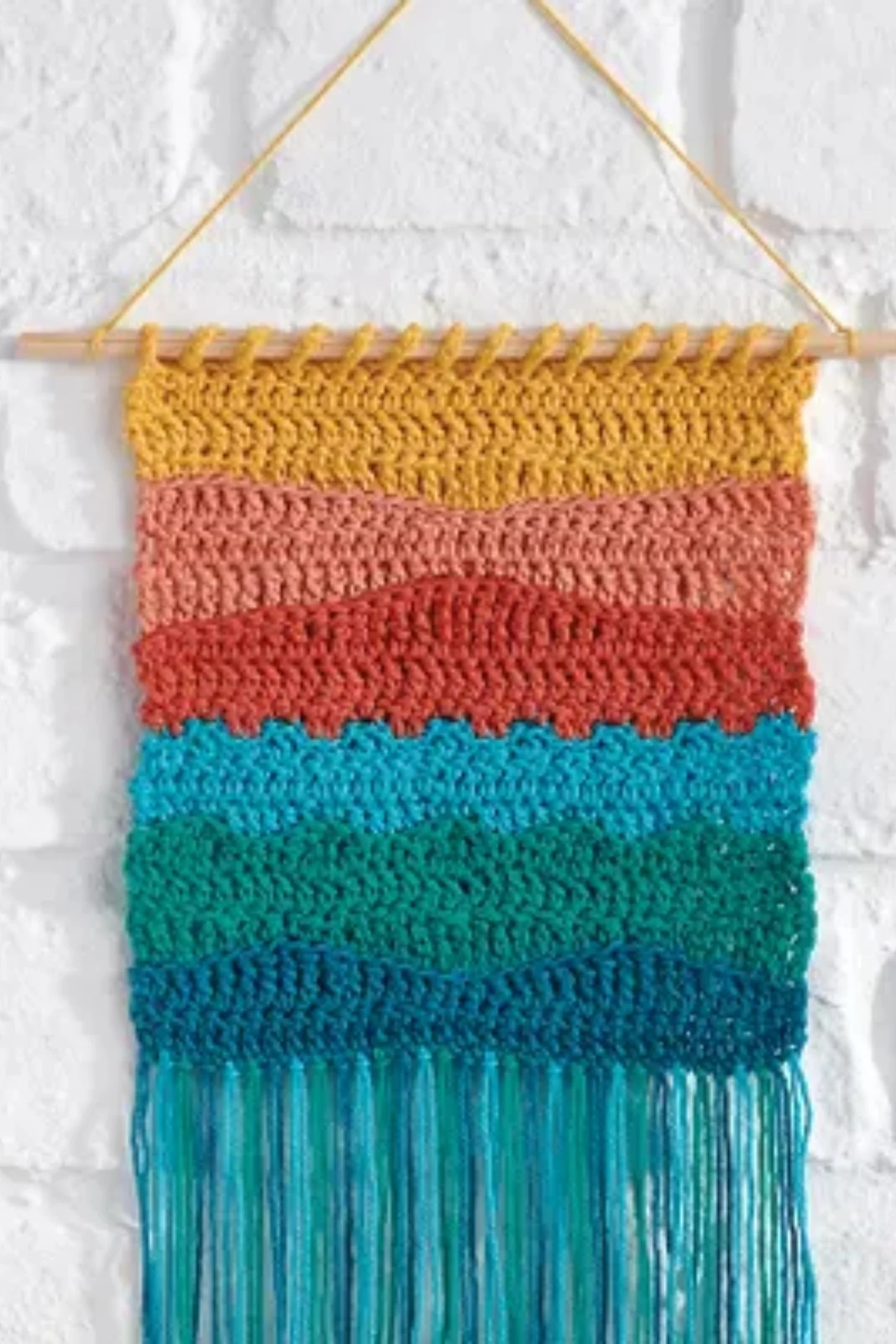 Looking to jump on the tapestry and wall hanging trend? Why not try a crochet wall hanging? Practice a variety of crochet stitches and end up with a beautiful piece of home decor at the same time!