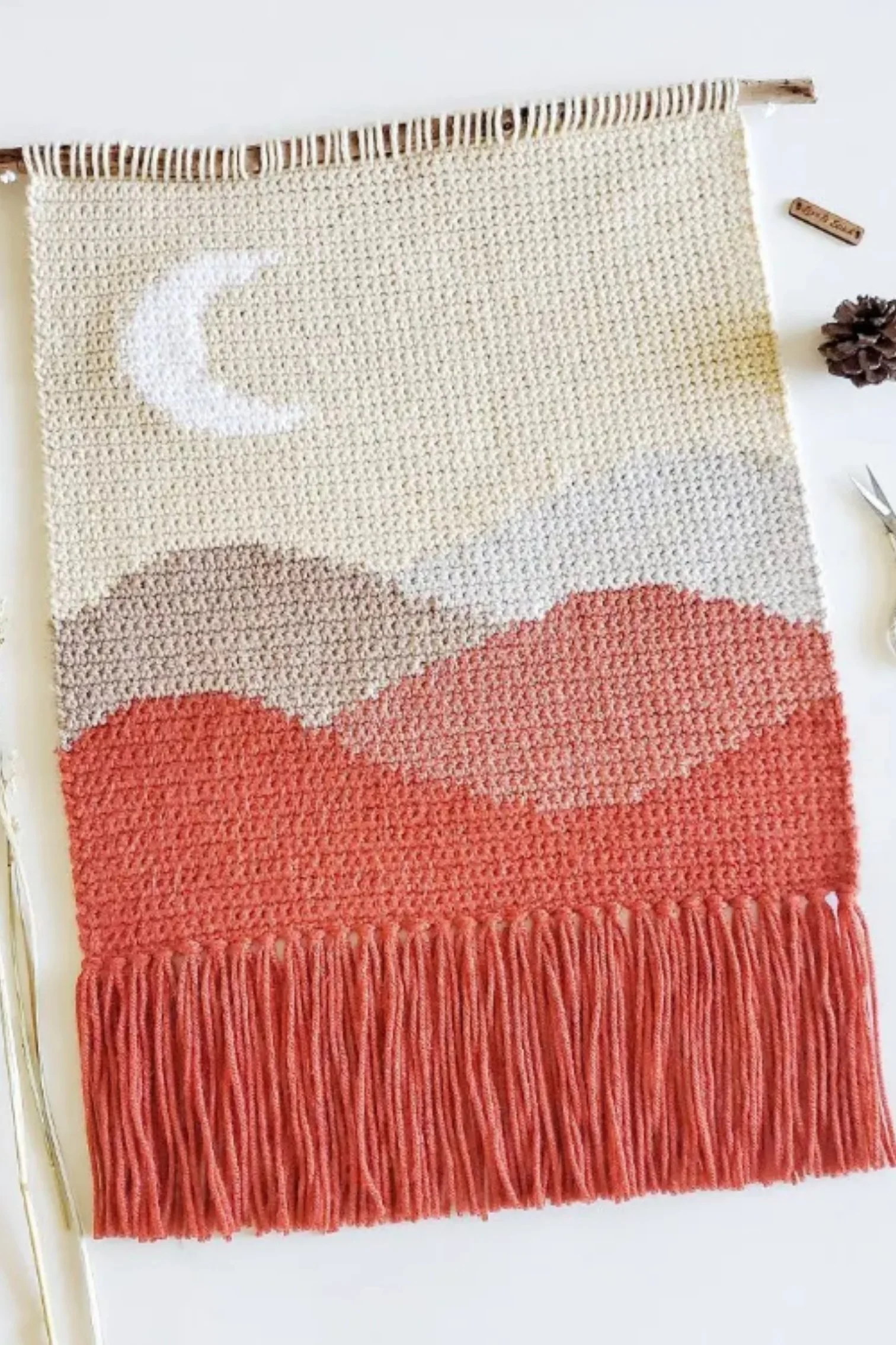 The Rolling Hills Wall Hanging pattern is slightly different to the Moon Ridge with the addition of the sun. I had so much fun creating this pattern. I hope you all love it as much as I do. Also feel free to get creative with the color story!