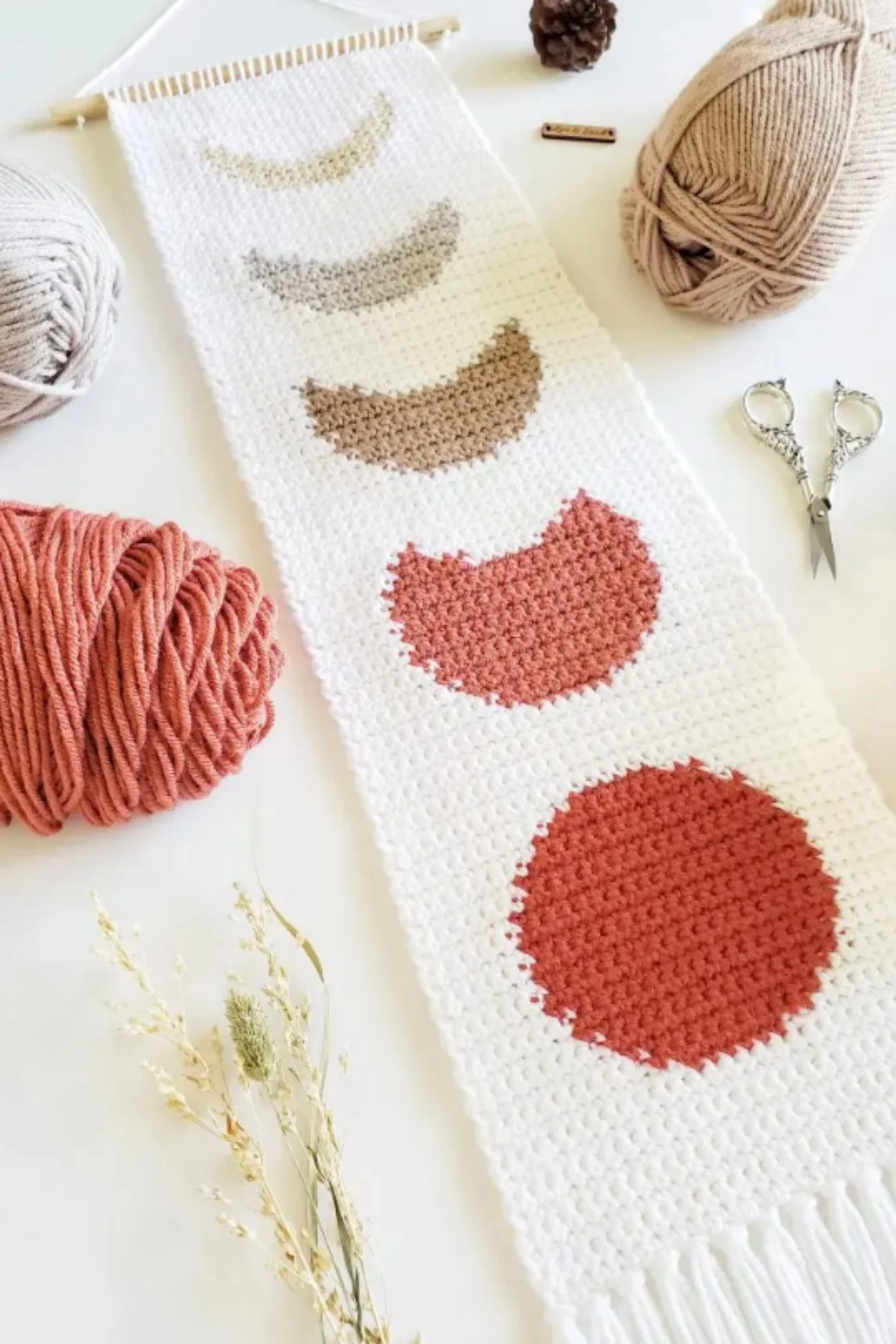 Mini Moon Phase Wall Hanging Crochet Pattern