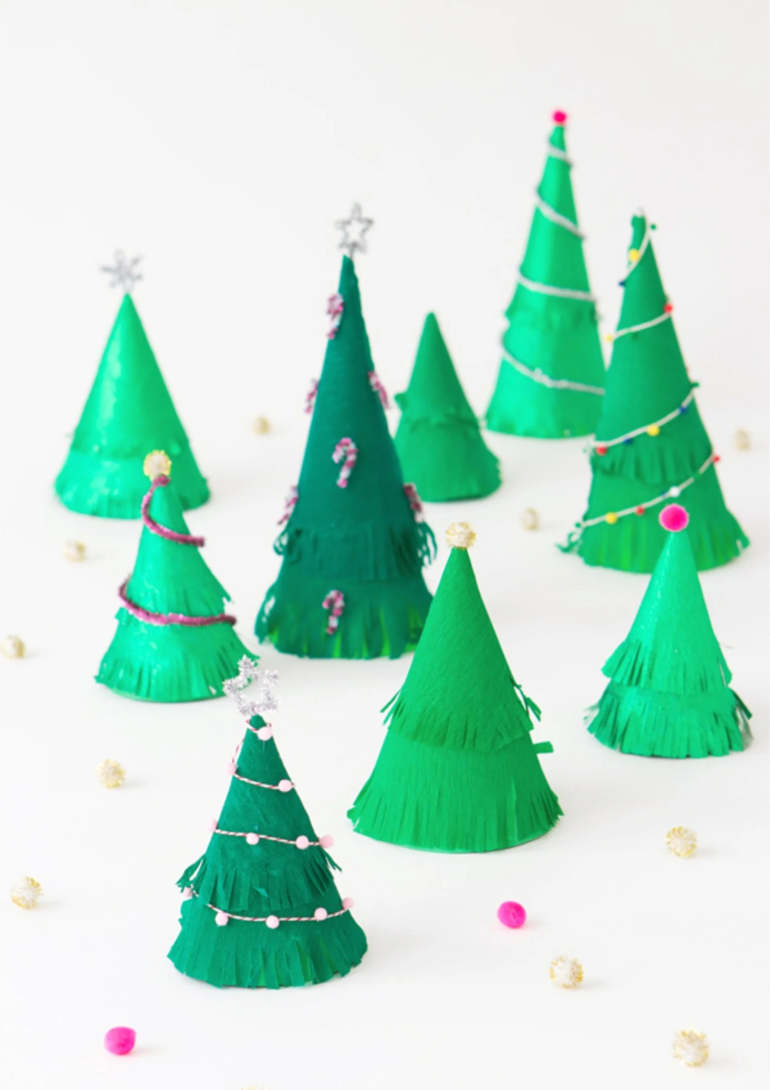 The way these paper Christmas trees are glued together gives them a trendy honeycomb look, and you can make them in any colour you like to fit your personal style.