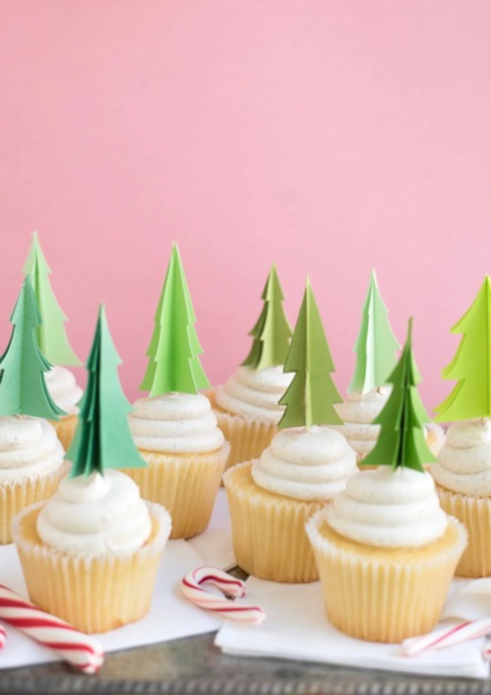 Layers of paper open to create a lovely 3-dimensional topper – scattered across a tray or cake stand, they create a pretty little forest. Happy Holidays!