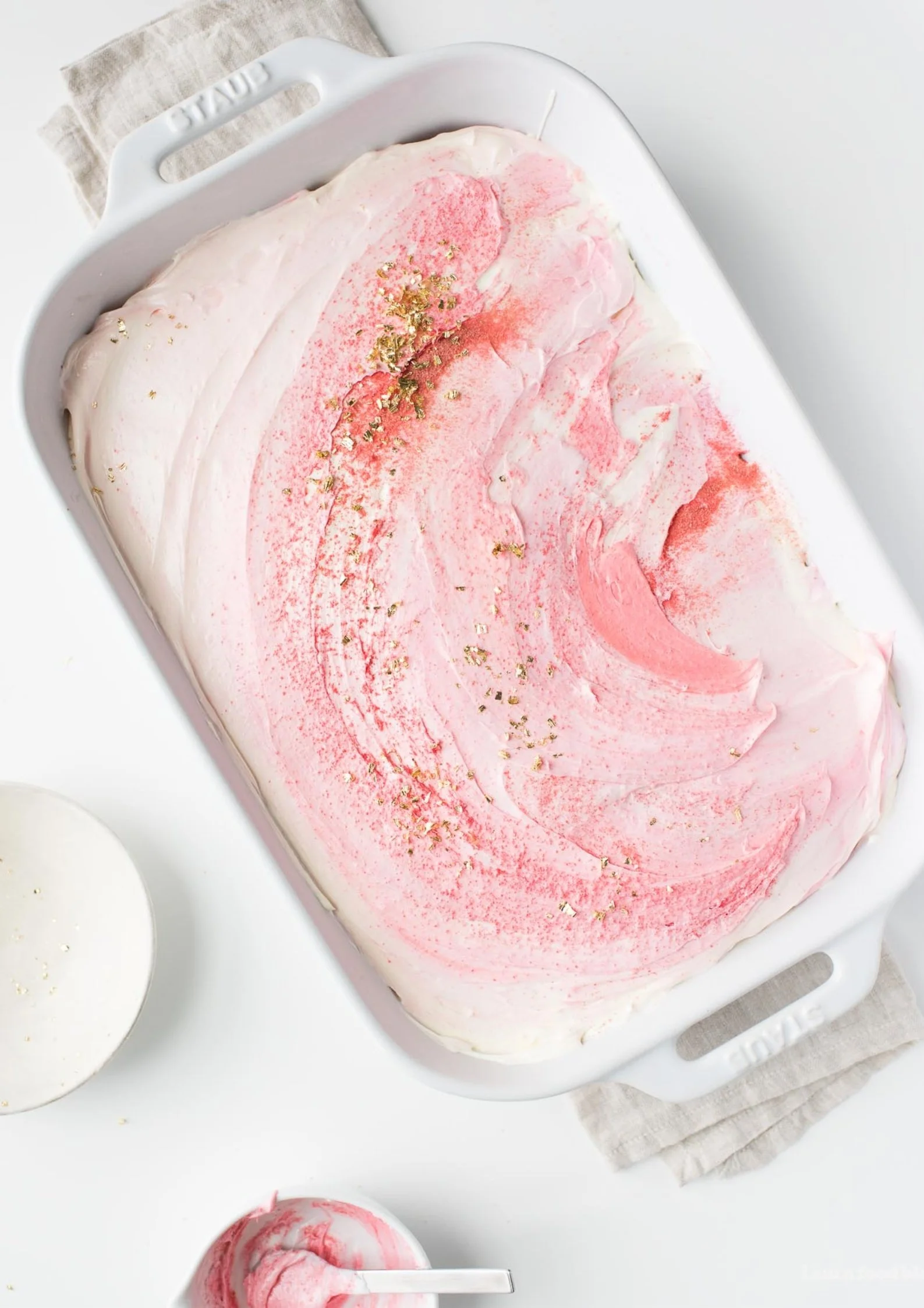 I’m a fan of frosting sheet cakes because they’re the easiest cakes to frost: no sides and no strange shapes.