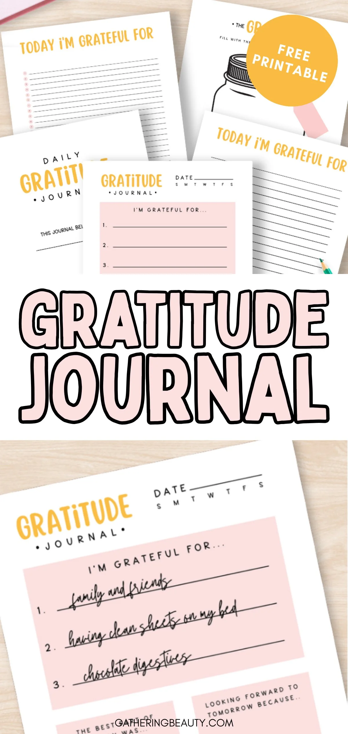 Printable Gratitude Journal Pages.