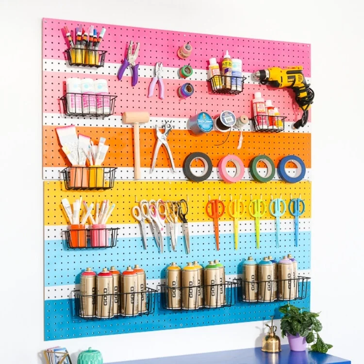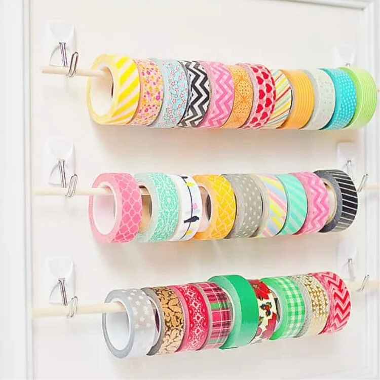 From washi tape holders to pegboards and hanging wall organisers, there are plenty of DIY options that won’t break the bank.