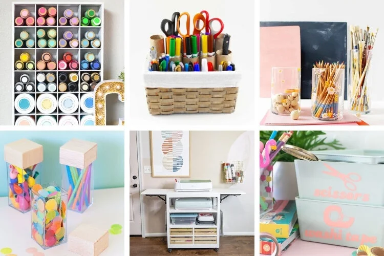 Today I’ve got thirty-five DIY storage ideas to help you declutter and organise your creative space no matter its size. Not only are they unique and something you can make yourself but they can also be less expensive and less wasteful than store-bought alternatives.