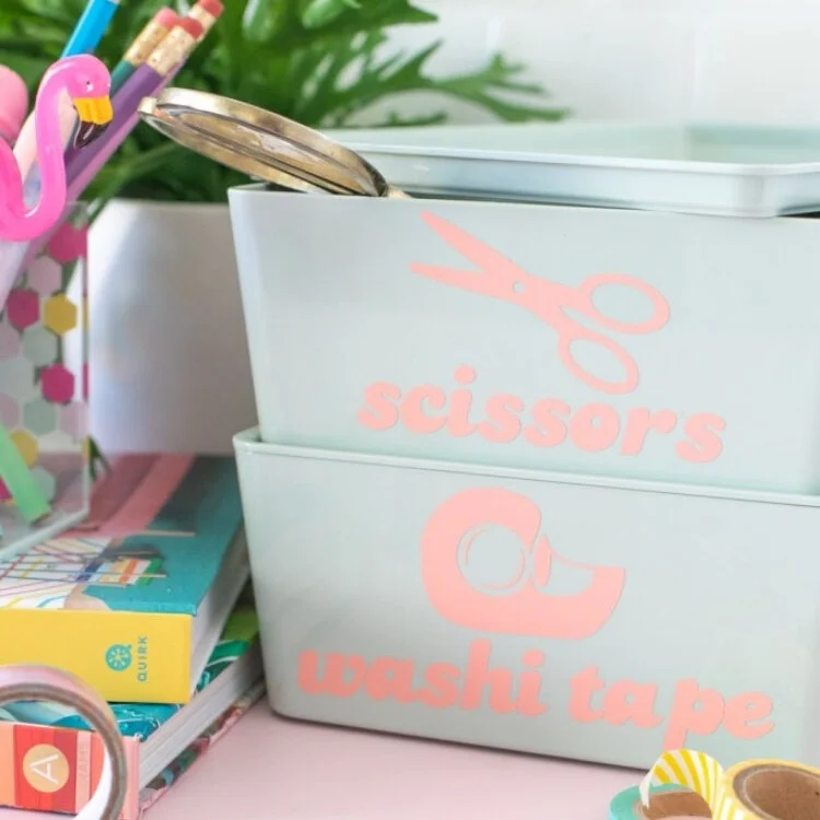 Add a pop of colour to your space by painting mini wooden crates in a rainbow of colors and creating custom labeled clear storage jars.