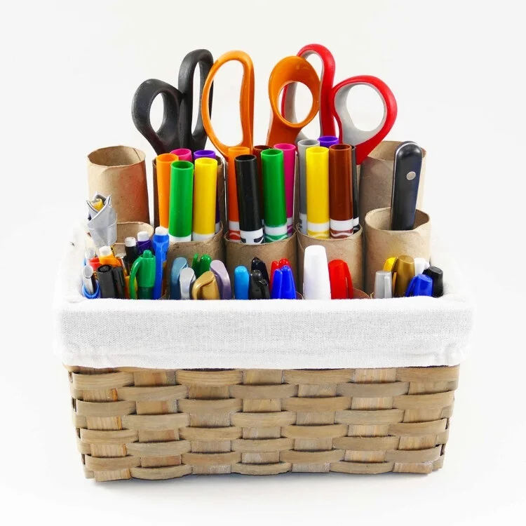 All you need to make these easy organiser is some paper towel cardboard tubes and a basket.