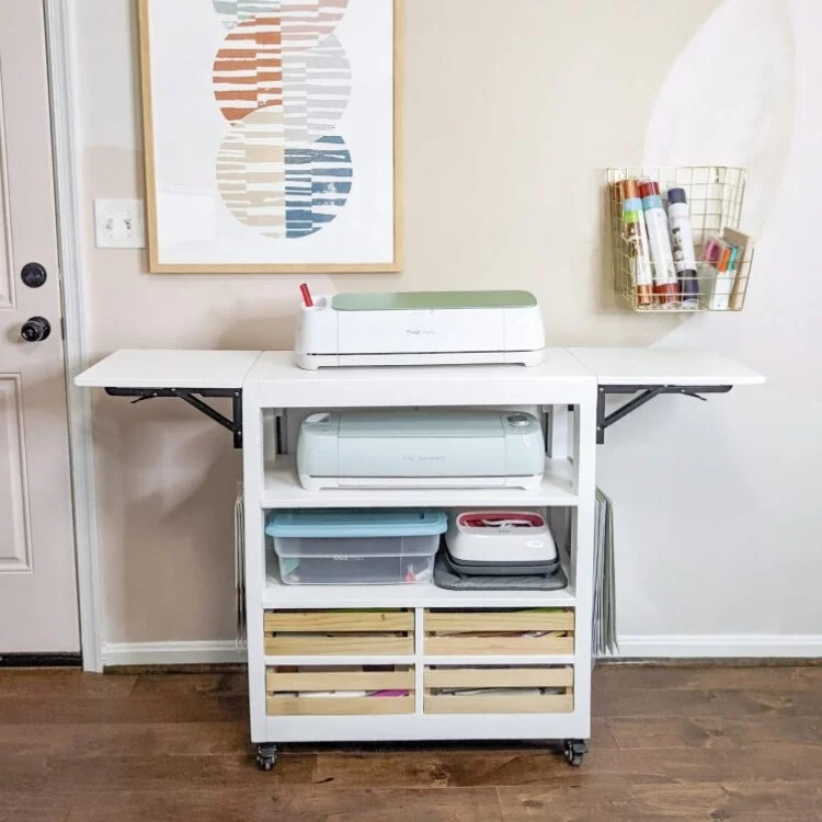 Looking for an easy DIY printer stand idea? Save space with a stacked printer and Cricut stand you can make yourself.