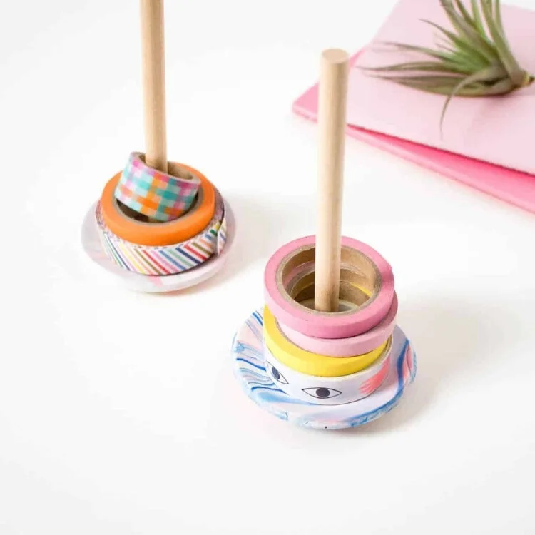 Whether you’re going back to school or just organizing your work space, this DIY Washi tape holder will keep your desk clutter-free so you can get down to business!