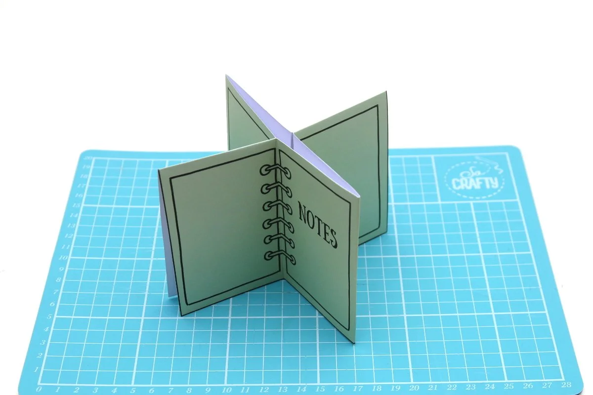 The template makes it easy to turn a single piece of paper into a mini notebook with six pages. It comes in two versions, a simple design with the word 'Notes' on the cover and a blank cover that can be turned into anything you like.