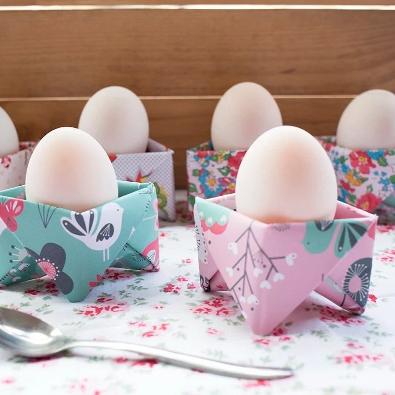 These egg cups are such a cute paper craft to make with the family. Each one can be folded in under a minute with a little practice.