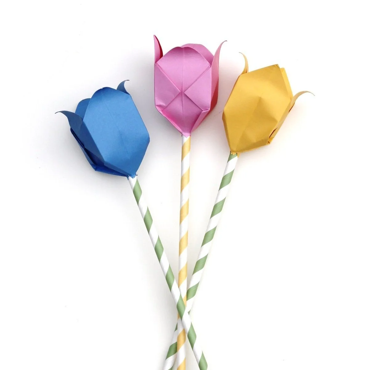 Try your hand at making Origami Tulips with Paper Straw Stems! These pretty paper flowers are beginner-friendly and will brighten up any space.