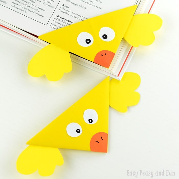 his cute chick corner bookmark is an easy origami for kids to make and they’ll love using it in their favourite books!