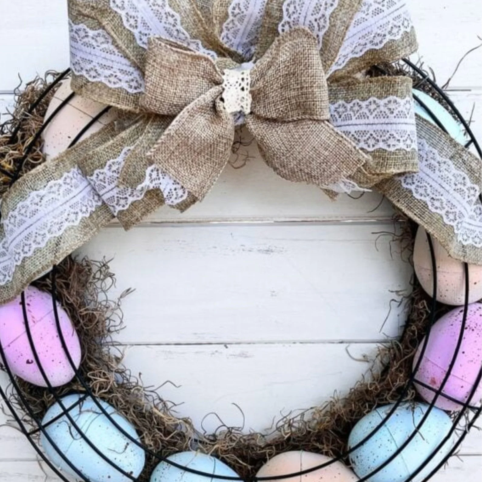 Make this beautiful rustic Easter Egg Wreath using dollar store plastic eggs, two-wire wreath forms, and pastel paint!