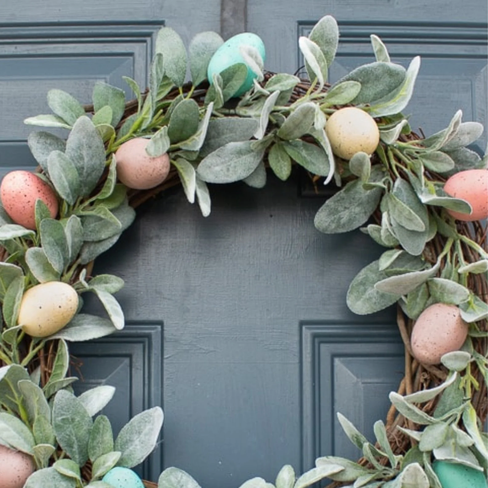 Spruce up your front door with this easy wreath. All you need is a grapevine wreath and a simple lambs ear garland.