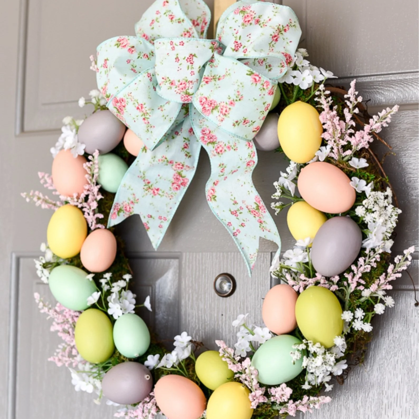 /Creating a DIY Easter Wreath for your front door is a fun way to decorate your home for the holidays. There are many beautiful DIY wreaths that you can make yourself using anything from dollar store plastic eggs to paper flowers.