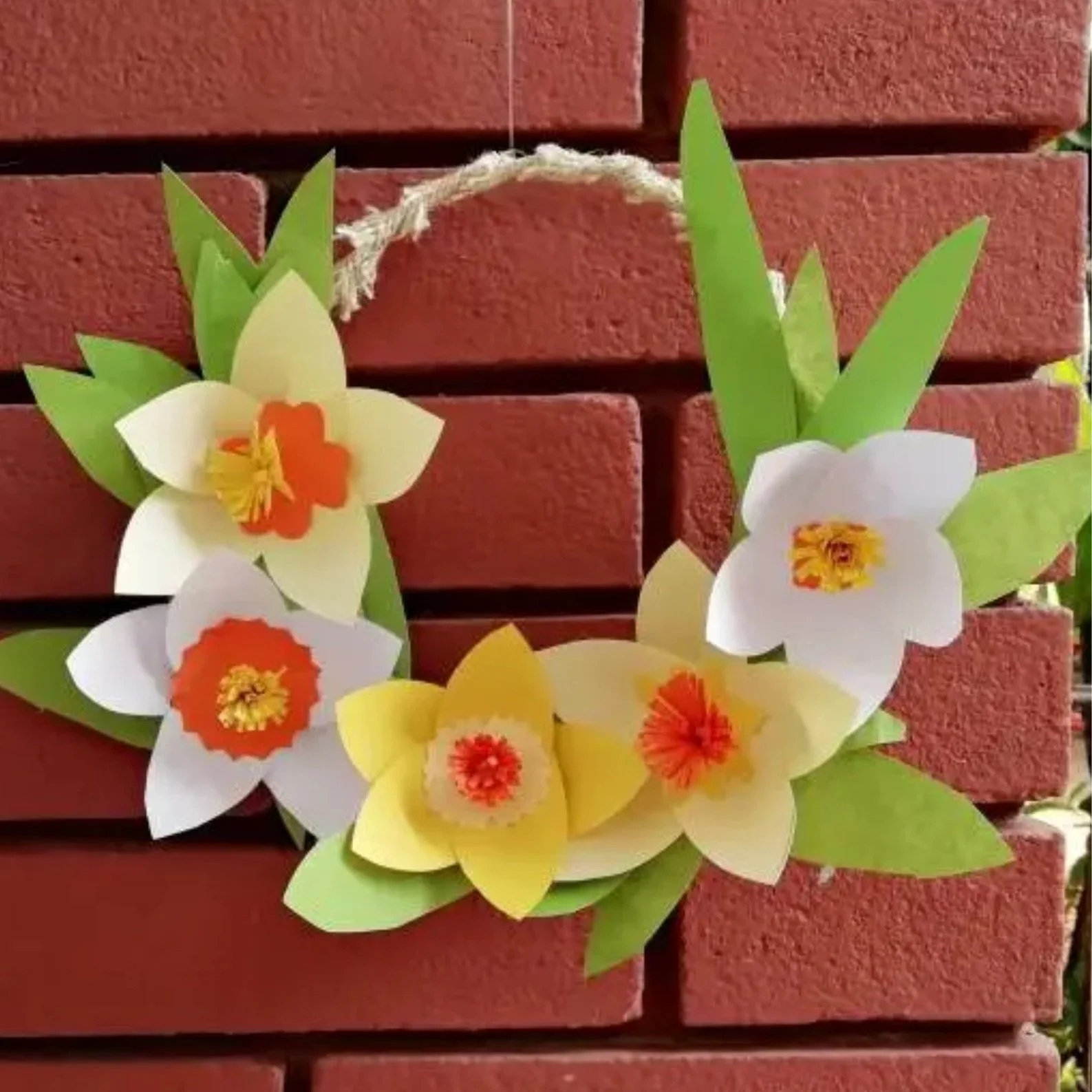 This easy paper daffodil DIY is simple and inexpensive to make. Get your kids and grandkids involved and have them make these flowers so that making this paper spring wreath is a family project.