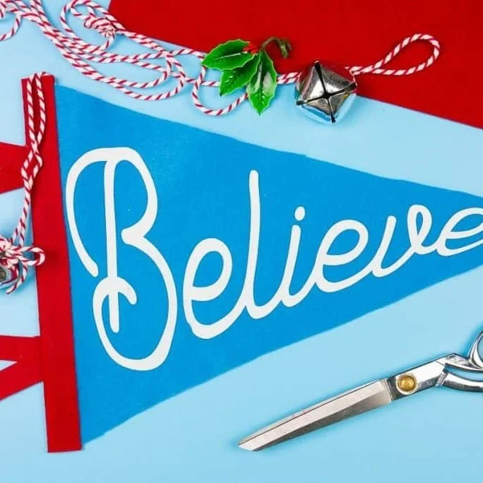 This adorable DIY felt pennant banner is simple to make with a Cricut (no sewing required). Did you know you can cut felt with a Cricut Maker or Explore?