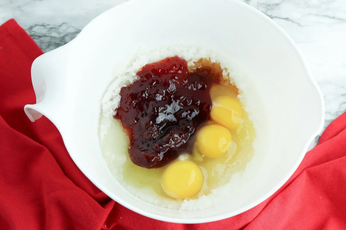 1. Beat together the softened butter, vanilla extract, and strawberry preserves.