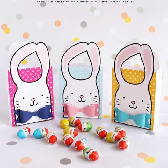 Easter Bunny Basket template is my newest free printable Easter craft designed with you in mind! Make this adorable bunny Easter Basket and fill it with mini eggs for the cutest Easter decoration this Spring!
