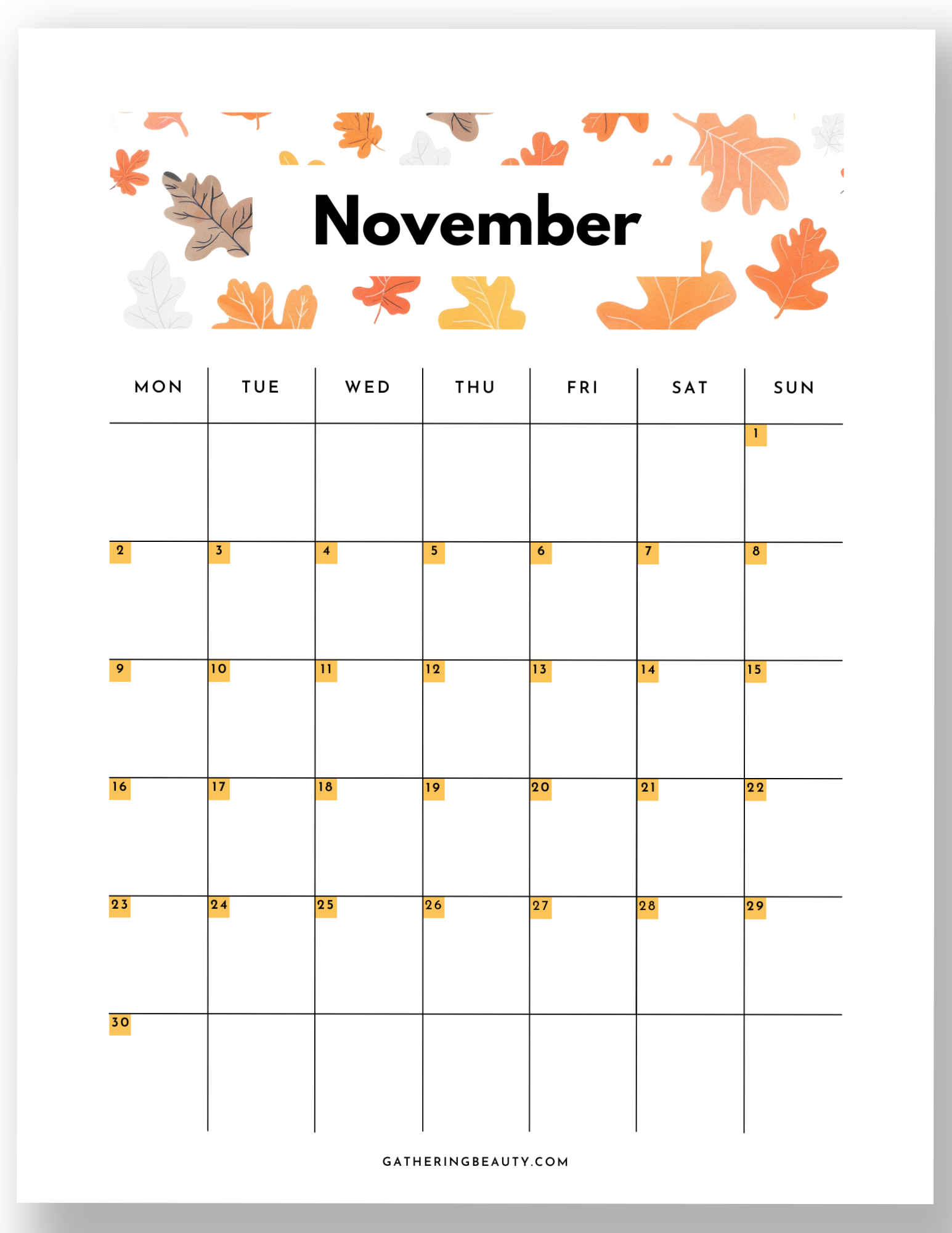 Measuring 8x10 inches (US letter paper size but can also be printed on A4) in portrait orientation, these calendars can be used in binders, on fridges, or on clipboards.