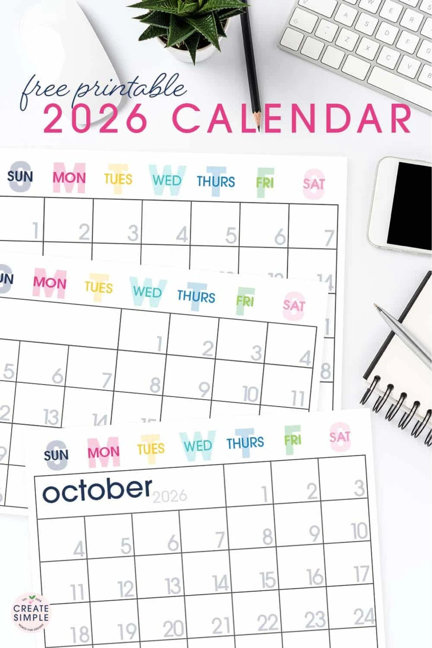 This free printable calendar 2026 will become your most favorite organizing tool! Plan your schedule, organize events, manage your goals, keep track of activities, and more!