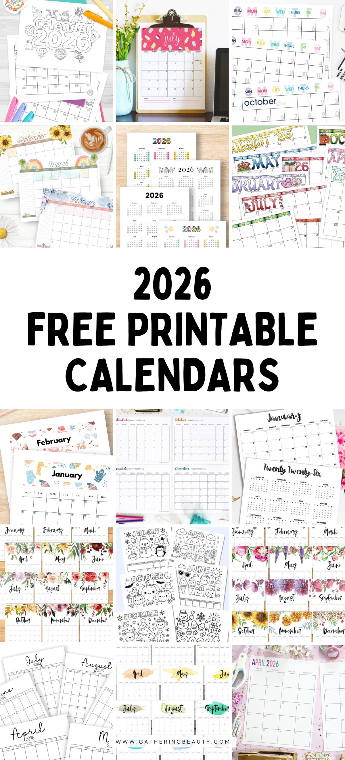 Free Printable 2026 Calendars
