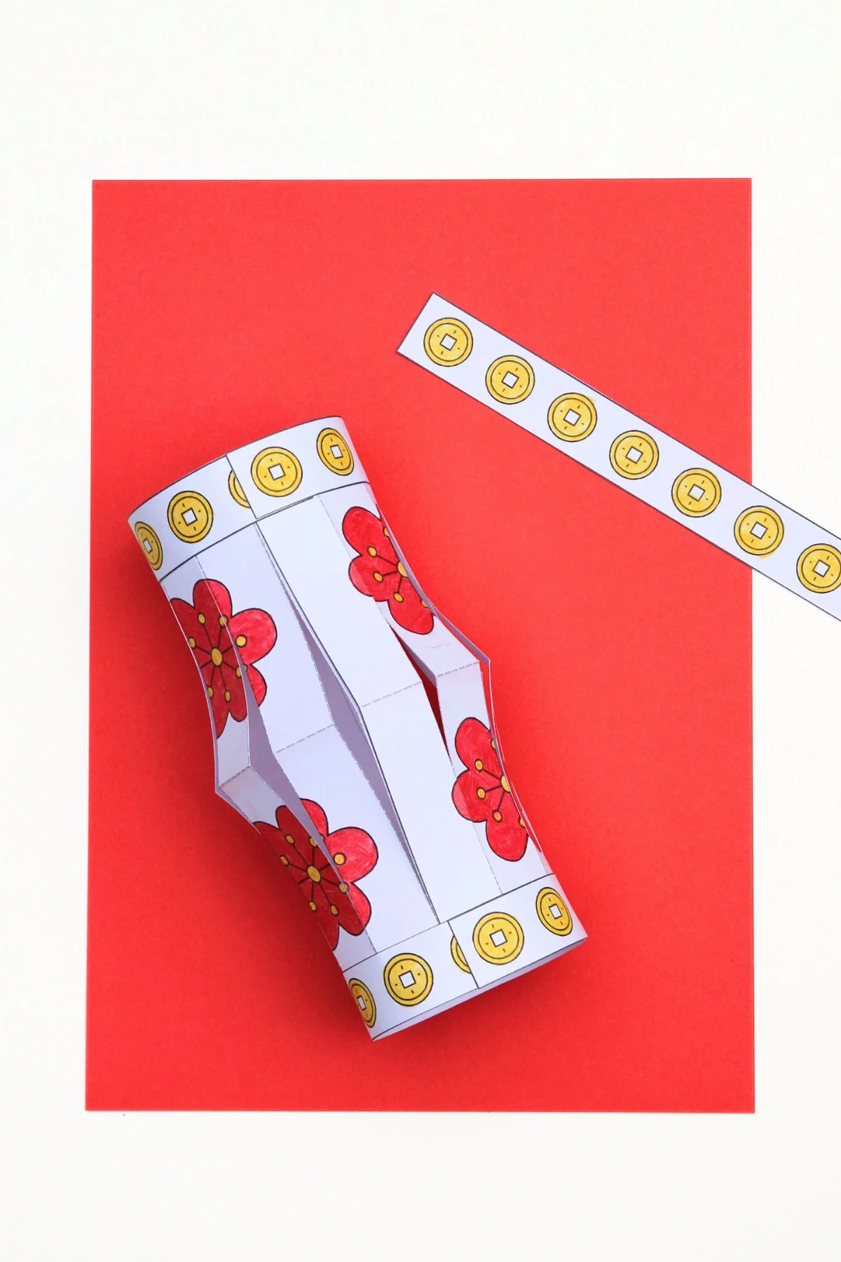 I printed mine out onto white cardstock and coloured them in using traditional reds and yellows but they would also look fantastic printed onto red paper and left as they are. You can mix and match the patterned strips or use the blank ones to make your own design.