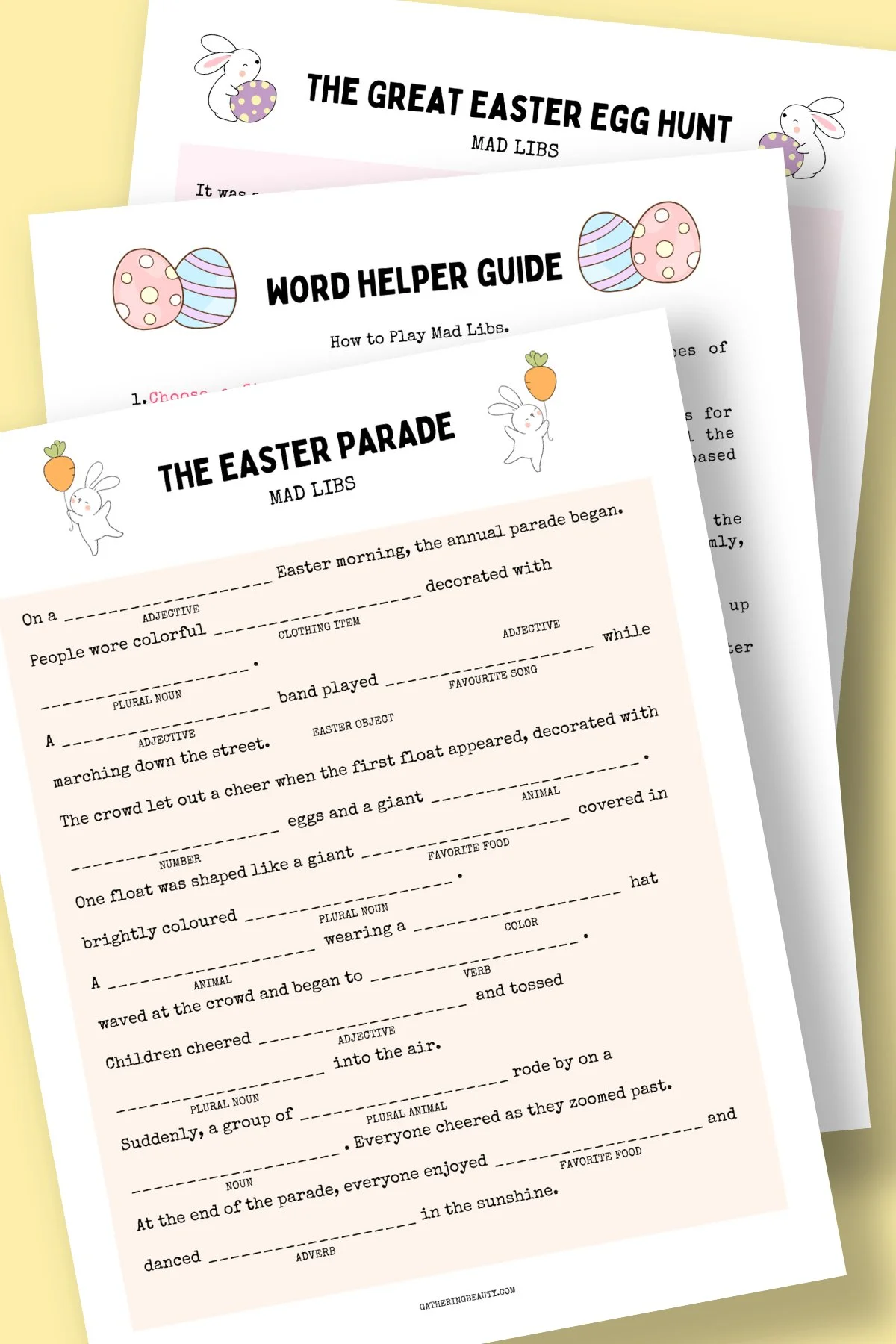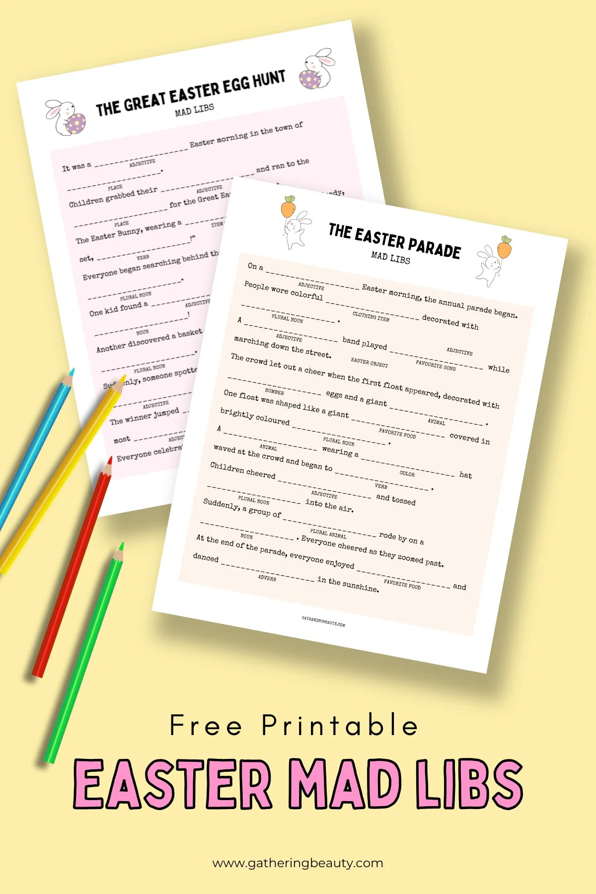 If you're looking for an easy, no-prep way to entertain friends and family this Easter break, these Easter-themed Mad Libs are the perfect activity!