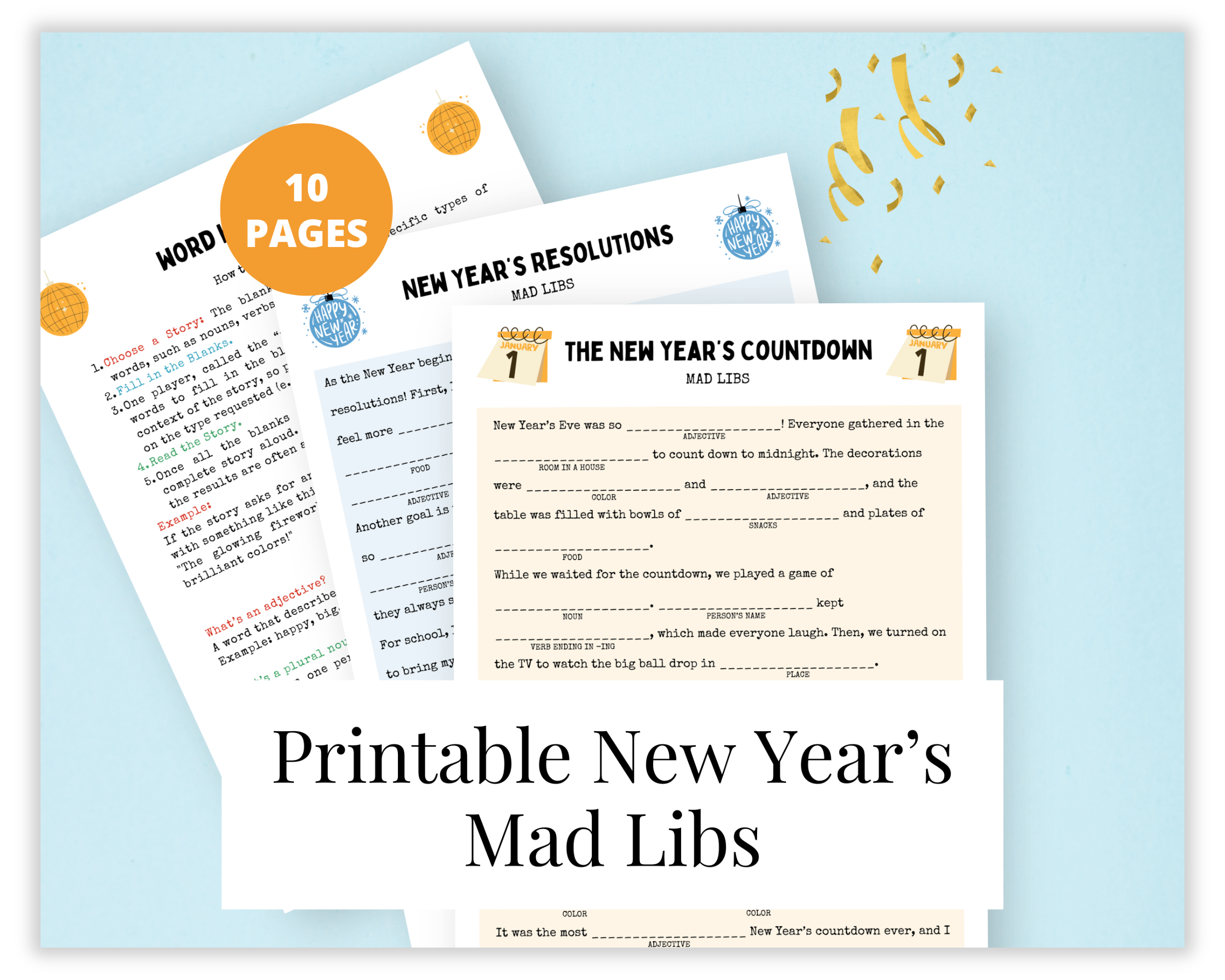 Whether you’re reminiscing about the past year or getting excited for the upcoming year, New Year Mad Libs are the perfect way to make your New Year's celebration the best one yet!