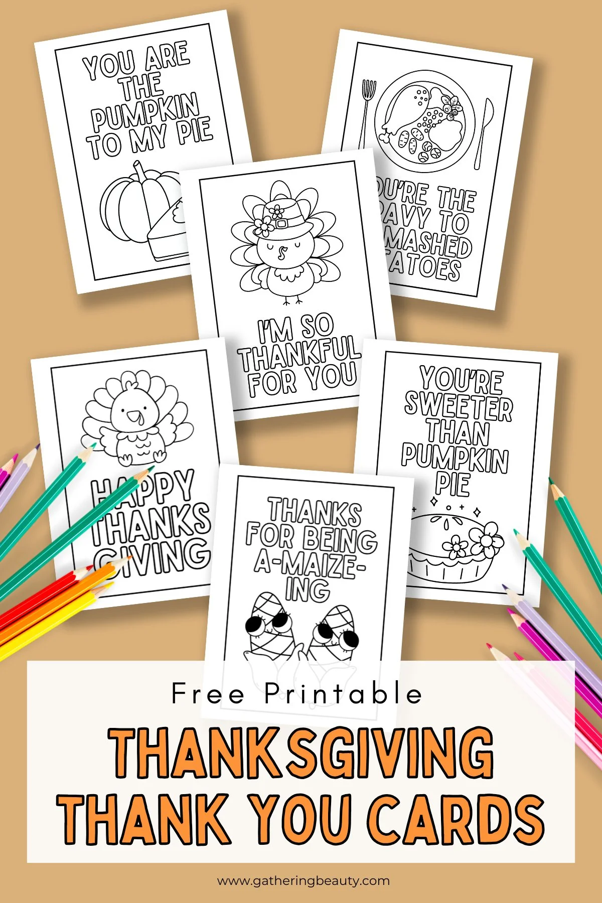 /These beautiful Thanksgiving printables are a perfect way to show gratitude to a family member, teacher, or friend. Download 6 unique Thanksgiving Card Templates, print them at home, and let everyone colour their own card this holiday season.