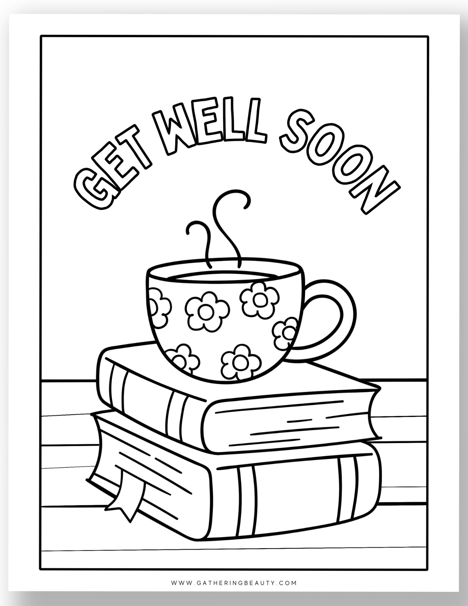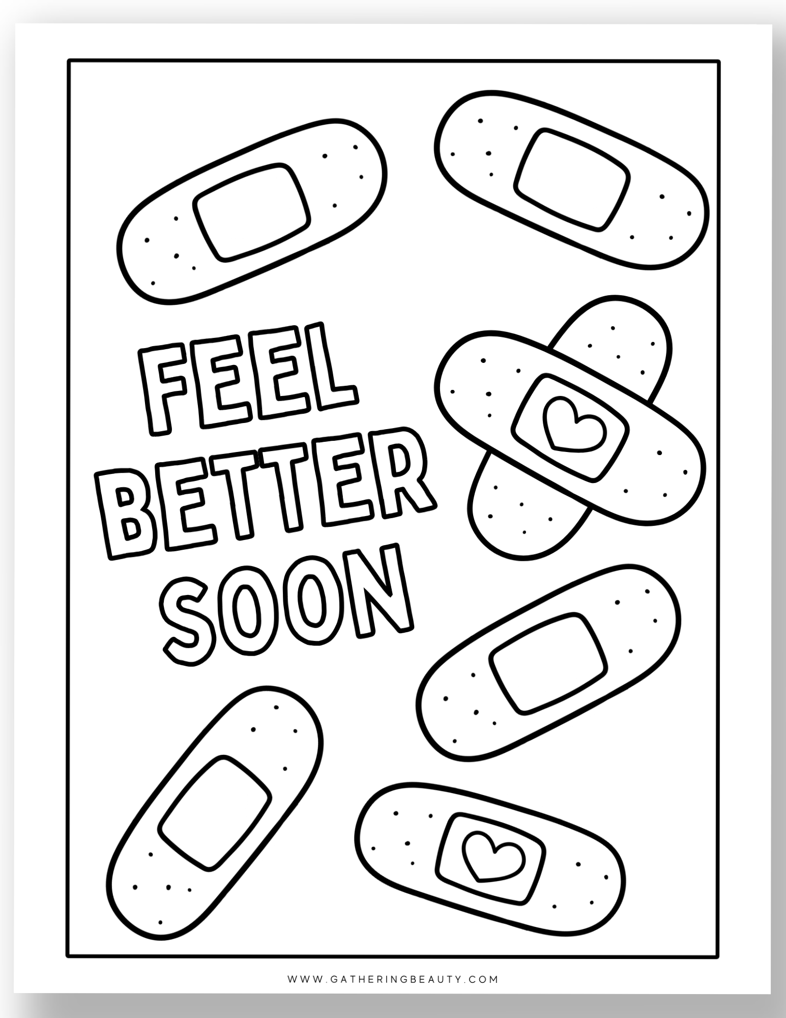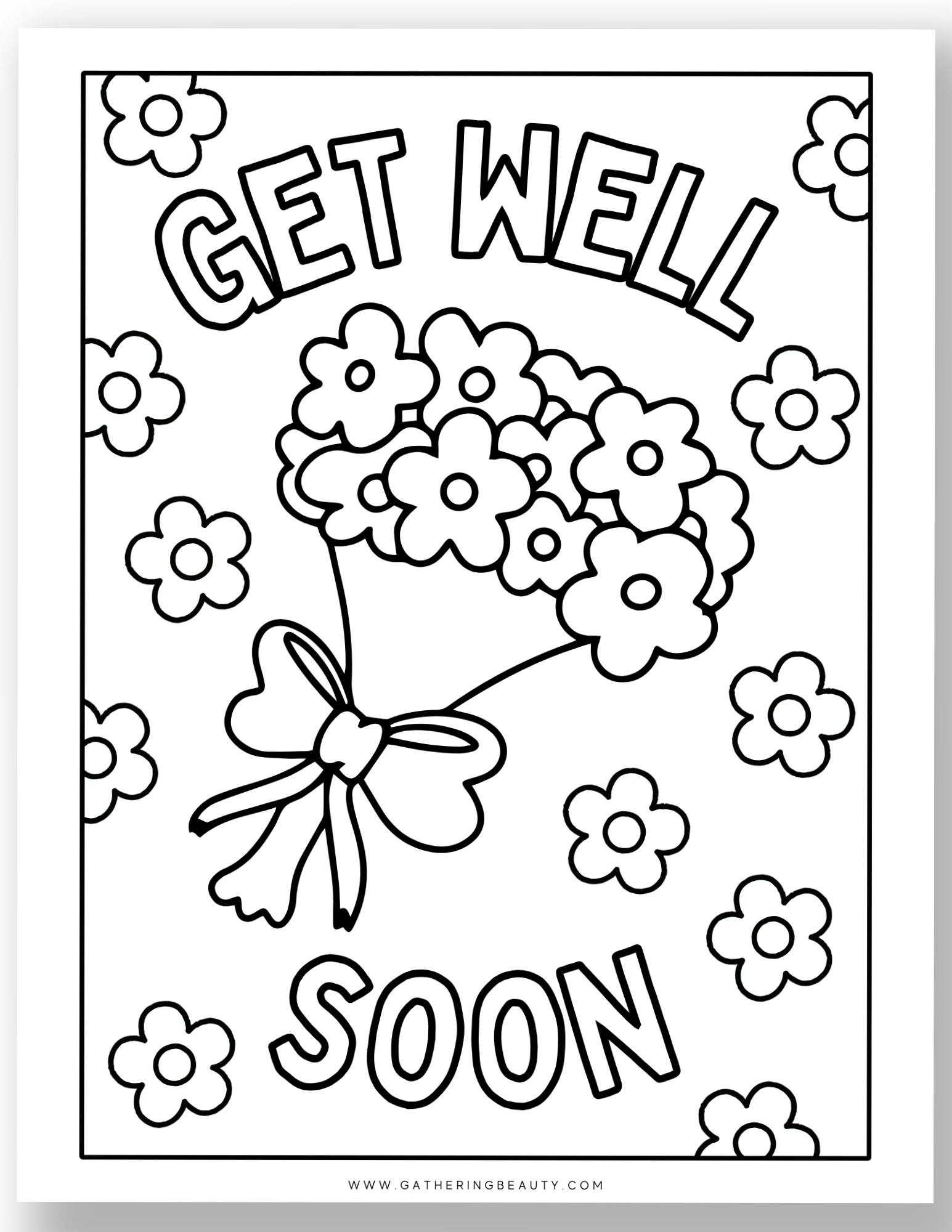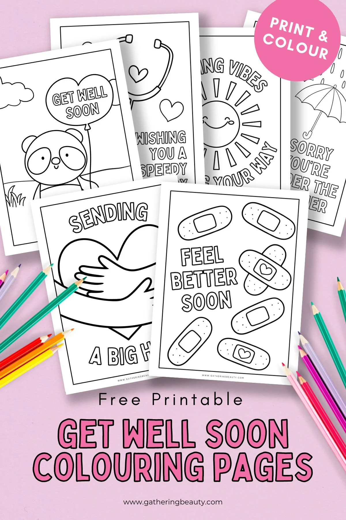 /Looking for a thoughtful way to brighten someone's day when they're under the weather? Download this set of Free Printable Get Well Soon Colouring Pages that you can print and colour at home!