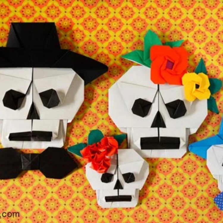 Whether you make one origami skull or a whole family of origami skulls, dress them up to celebrate either the Day of the Dead or Halloween.