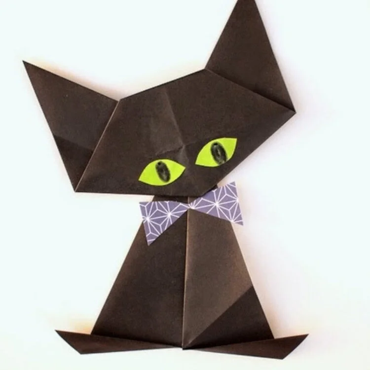 Make Easy Origami Black Cats for Halloween! Perfect for spooky fun activities with kids! Follow the simple step-by-step instructions to fold your own super cute paper cats.