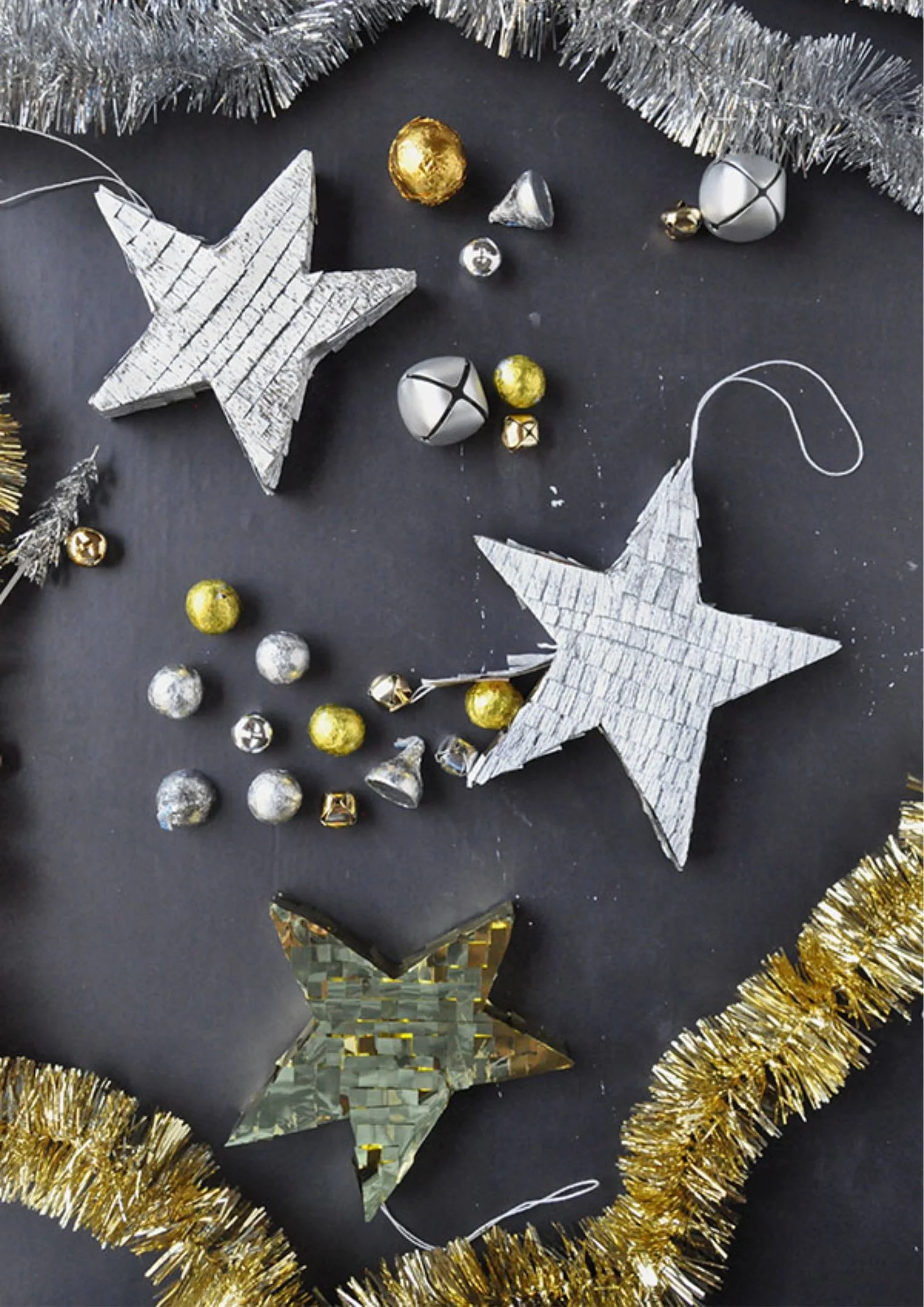 Make these miniature star piñatas and fill them with all the silver and gold treats you can find